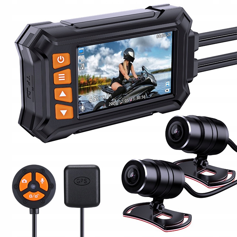 - IP67 Водонепроницаемый дизайн и модуль GPS: это профессиональное видео на мотоцикле, специально разработанное для дождливых дней, все устройства и аксессуары имеют профессиональный водонепроницаемый дизайн, основное устройство и оба объектива поддерживают водонепроницаемые дни IP67. Мотоцикл Dashcam включает в себя внешний модуль антенны GPS для отслеживания маршрута