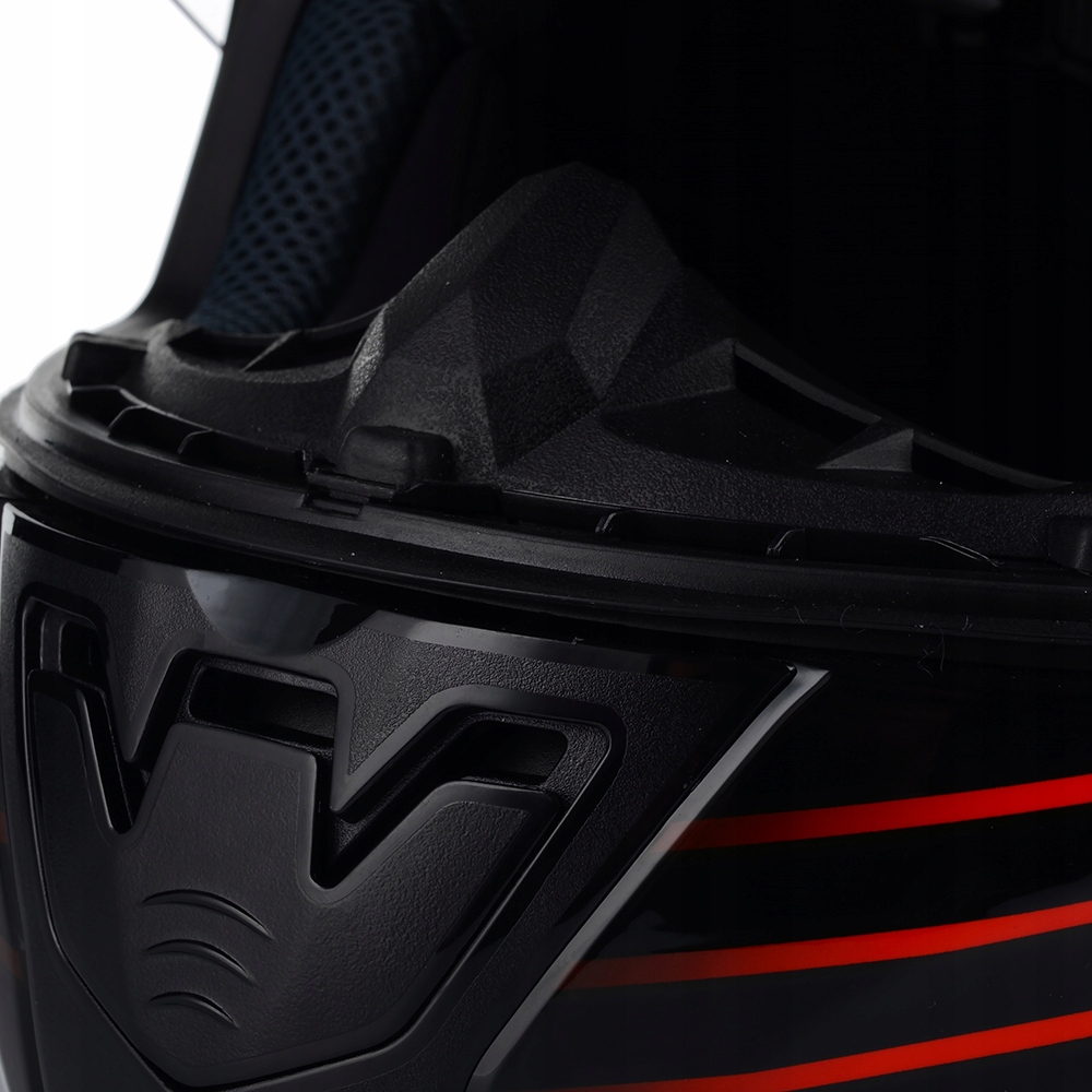 Стекло для шлема устойчиво к царапинам, испарениям и ультрафиолетовому излучению , а также имеет контакты, которые позволяют исправить пинлок. Чин уменьшает шум и воздушную турбулентность.
