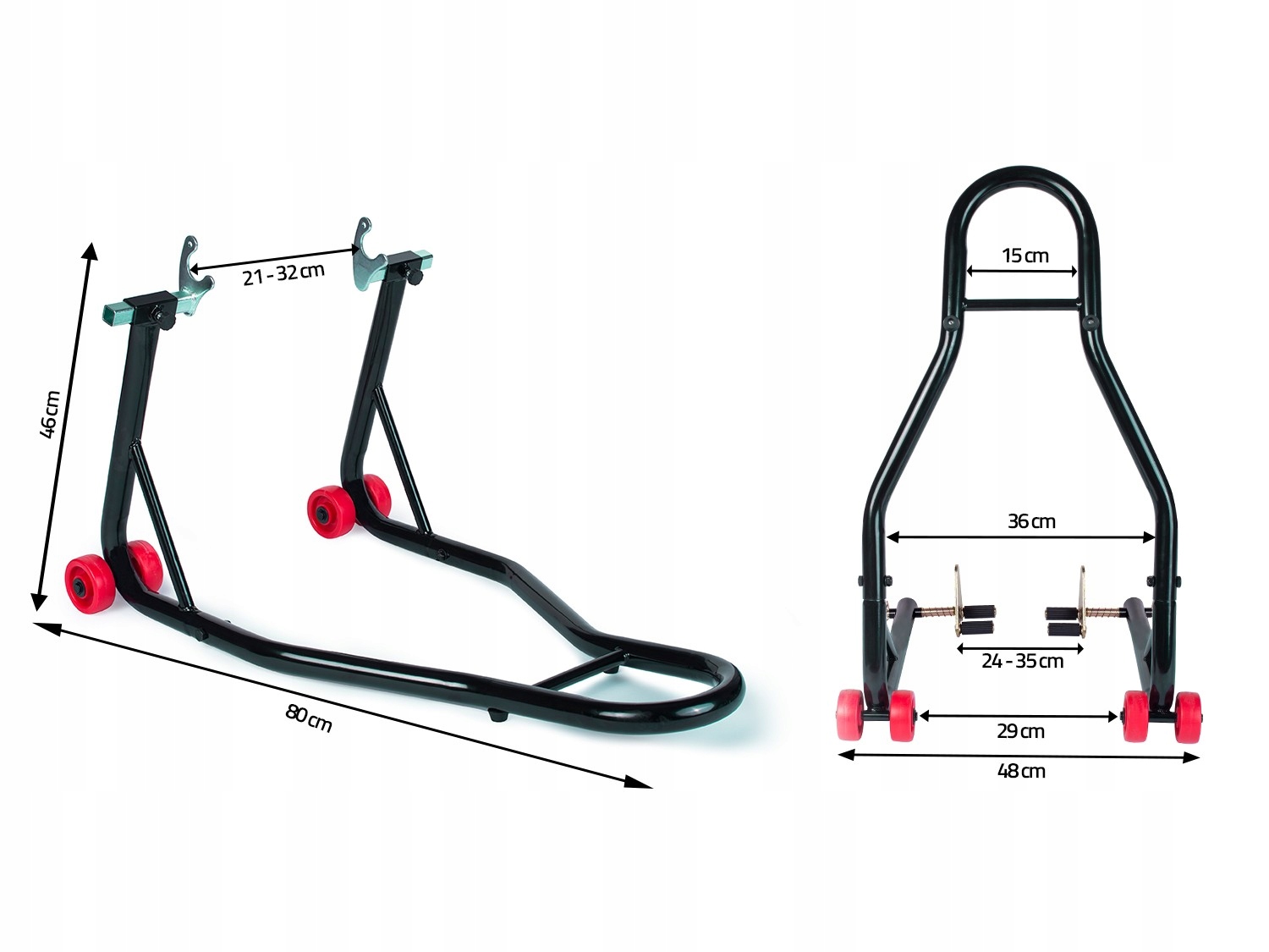 Стенд имеет регулируемые адаптеры. Высота этой модели составляет 46 см, а длина - 80 см. Идеально подходит для небольших комнат, где имеет место каждую часть пространства. Он оснащен двойными, дополнительно усиленными колесами. Это отличный способ хранить мотоцикл или сервис! Набор включает в себя две части.