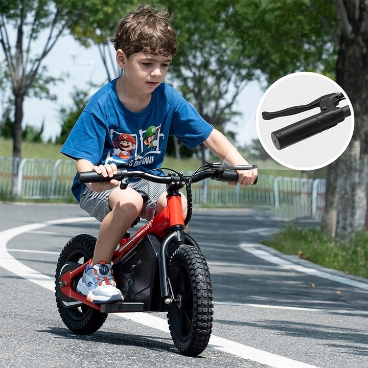 Детский электровелосипед EVERCROSS EV06M оснащен двигателем 24 В мощностью 100 Вт и литиевой батареей емкостью 4 Ач. Максимальная скорость составляет 15 км/ч, и он может проехать 10 км (вышеуказанные значения могут возникать из-за условий вождения, воздействия, условий технического обслуживания и последствий).