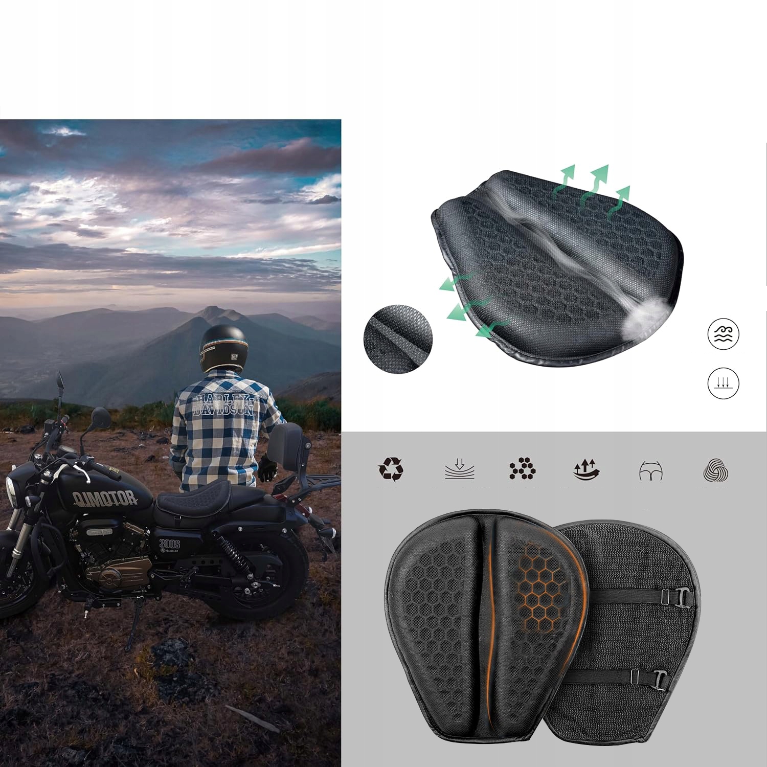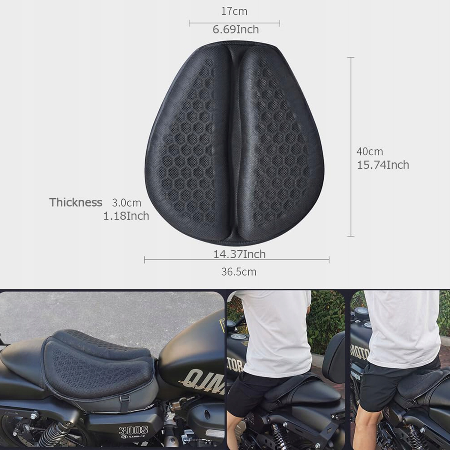 - Подушка для сидений на мотоцикле имеет трехмерную сотовую структуру, которая циркулирует воздух быстрее, чем губчатая подушка, которая может эффективно помочь в охлаждении и отвлечении тепла, защищая вас от пота и материала.