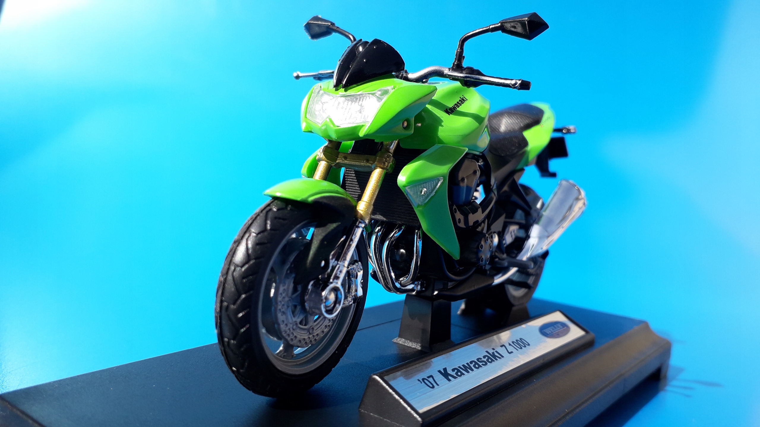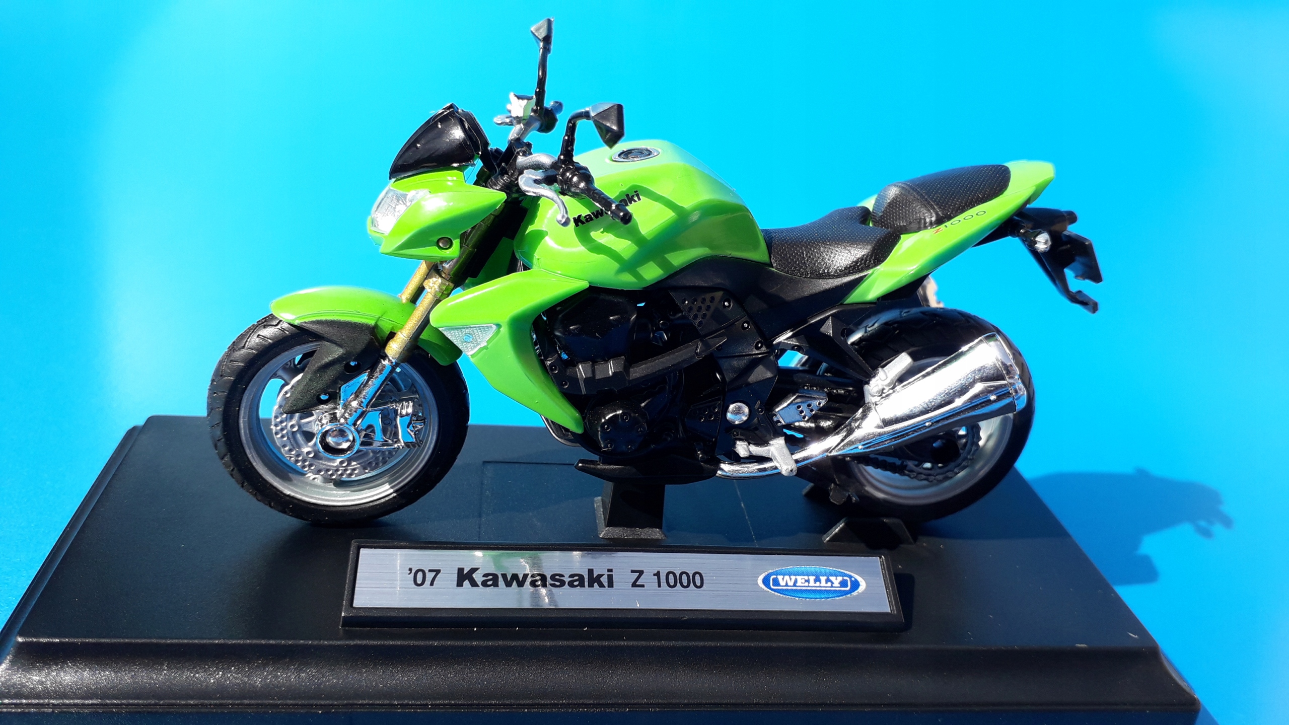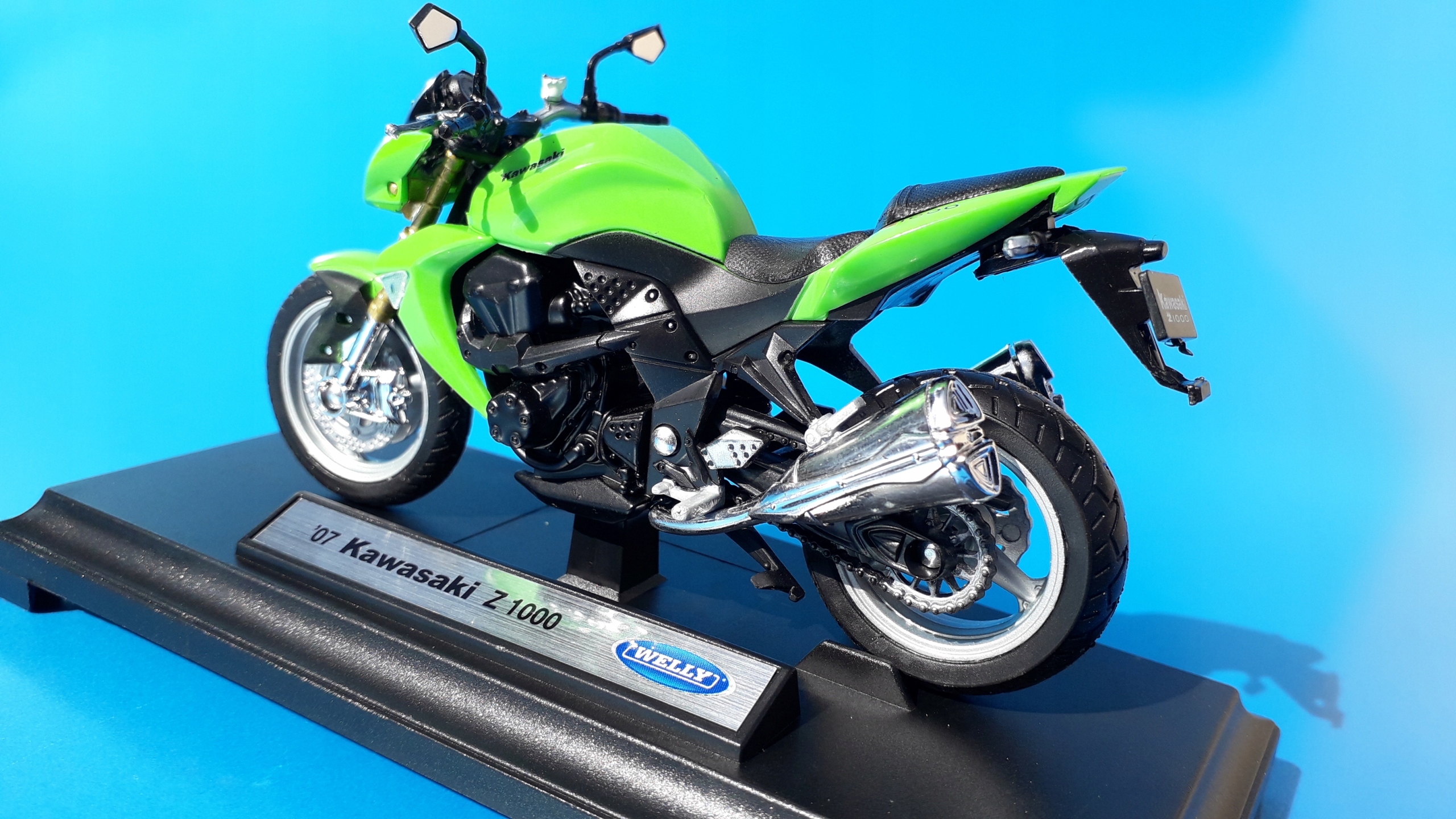 Мотоцикл Kawasaki с 1000 Green 2007 Metal Model Welly 1:18