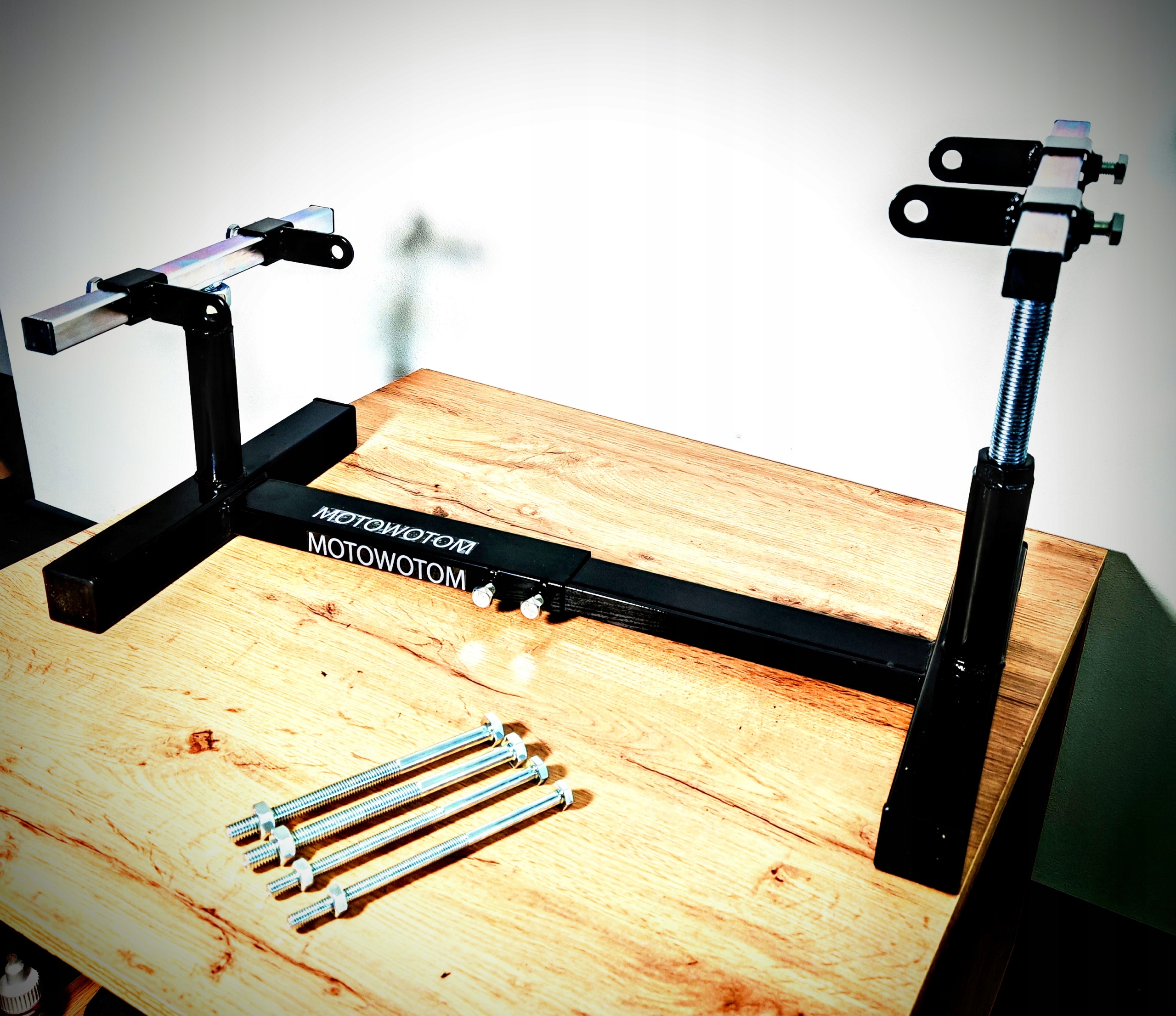 Сплошная и функциональная подставка для мотоцикла, идеально подходит для мастерской, гаража или обслуживания. Строительство была разработана для комфорта работы и максимальной стабильности во время демонтажа и обслуживания двигателя. Он будет предлагаться как с небольшими двигателями 50,85 см, так и с большими 450 или даже 600 см.