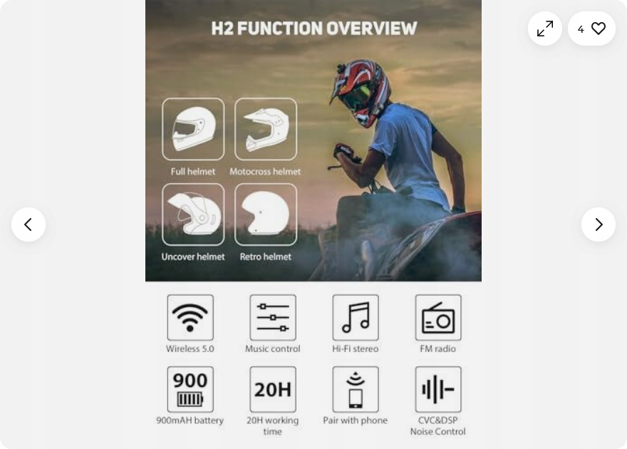 - Наушники мотоцикла H2 с большими динамиками диаметром 40 мм обеспечивают отличное качество звука при прослушивании музыки и разговоров. Благодаря технологии шума DSP и CVC, вы все равно можете наслаждаться чистой музыкой, даже во время движения на высокой скорости, избегая шума двигателя, ветра и движения. Дождь, шторм и снег. Он широко используется в большинстве открытых, модульных и полных шлема. Большие кнопки и волнистая ручка облегчают работу даже с перчатками. Встроенная батарея в 900 мАч обеспечивает непрерывную работу в течение 20 часов и 300 часов в режиме ожидания на одном заряде.