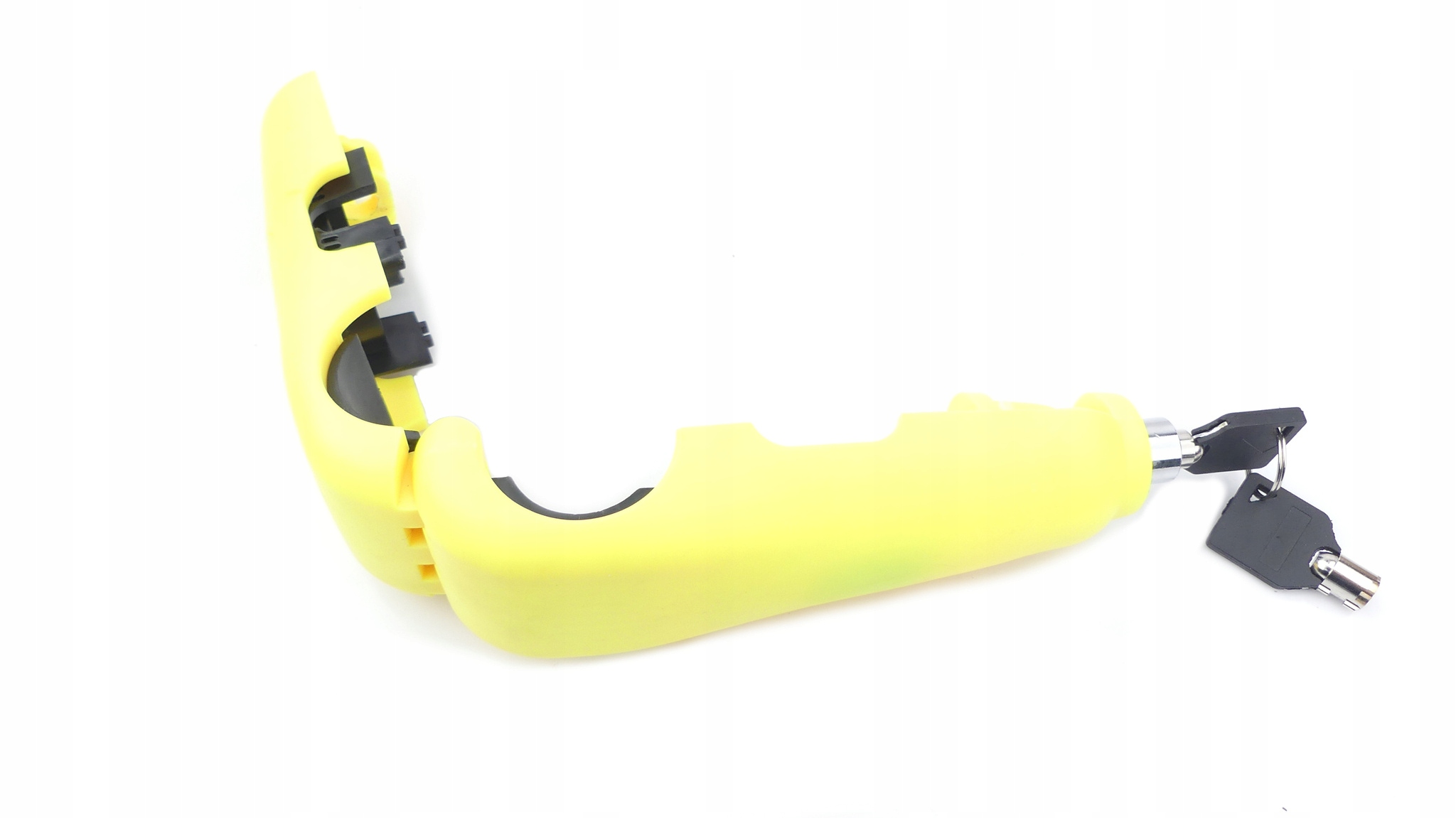 Жёлтый замок тормозного рычага с сигнализацией предназначен для большинства мотоциклов, мопедов, скутеров, квадроциклов и квадроциклов. В комплект входят 2 ключа и батарейки. Товар хорошего качества.