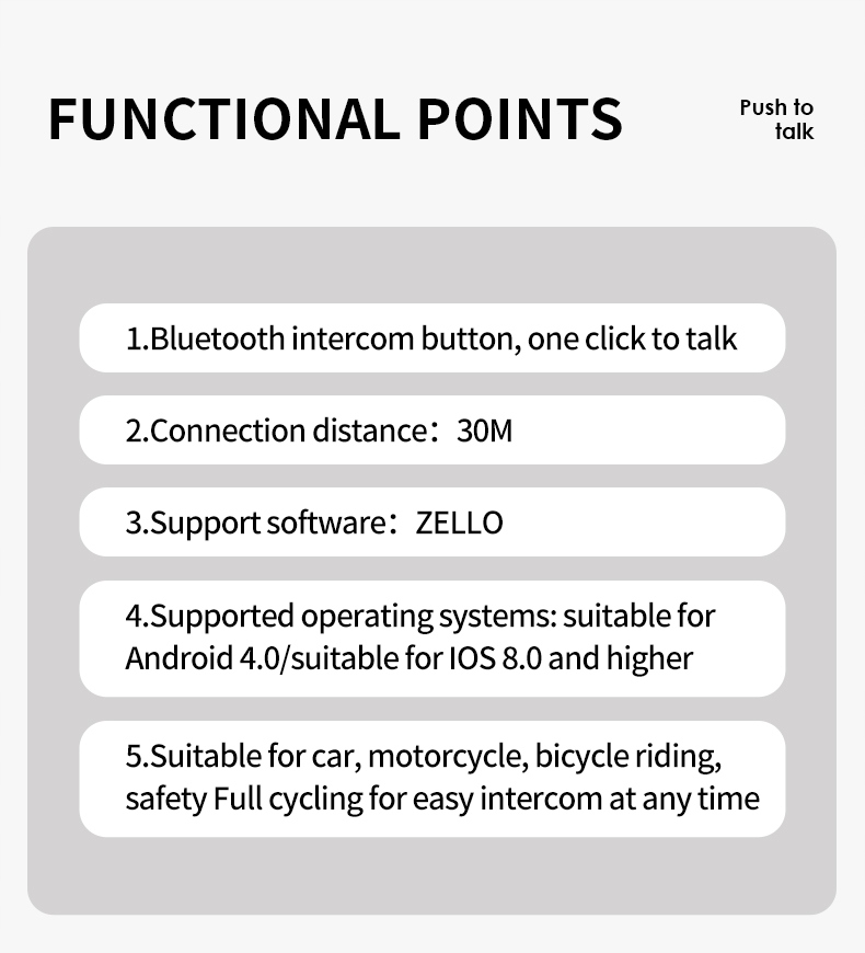 МОТОЦИКЛЕТНА БЕЗДРОТОВА КНОПКА PTT ДЛЯ ZELLO
