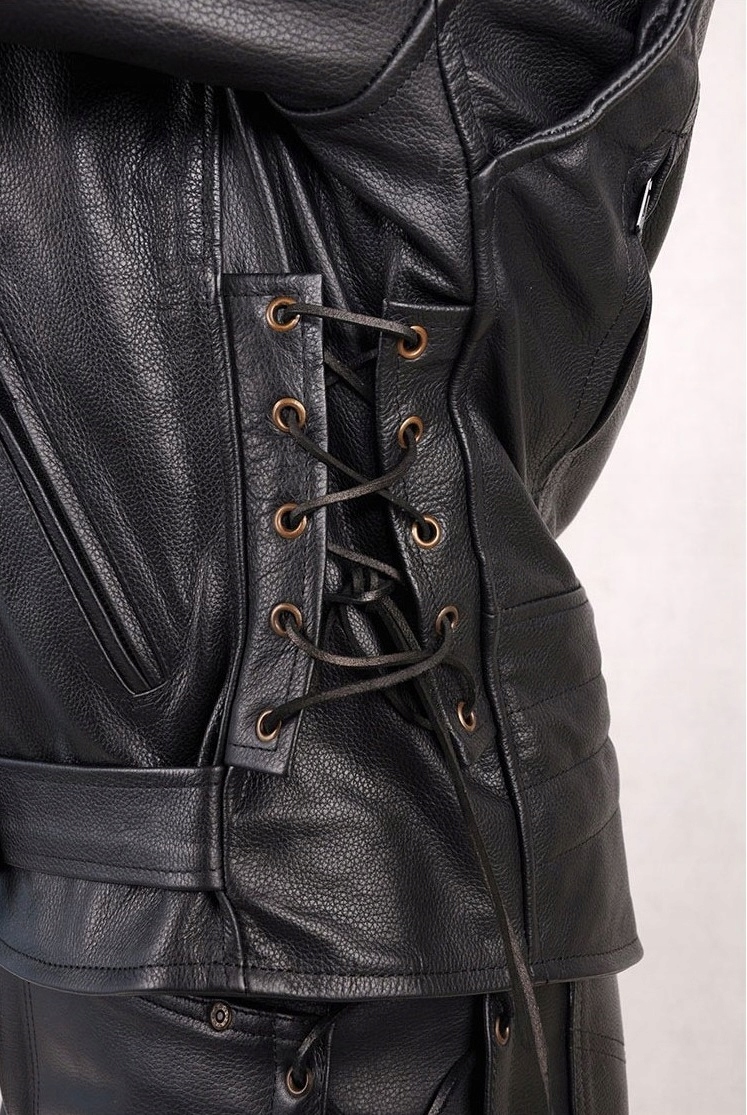 - кожаные ремни под мышками позволяют оптимизировать куртку по фигуре пользователя