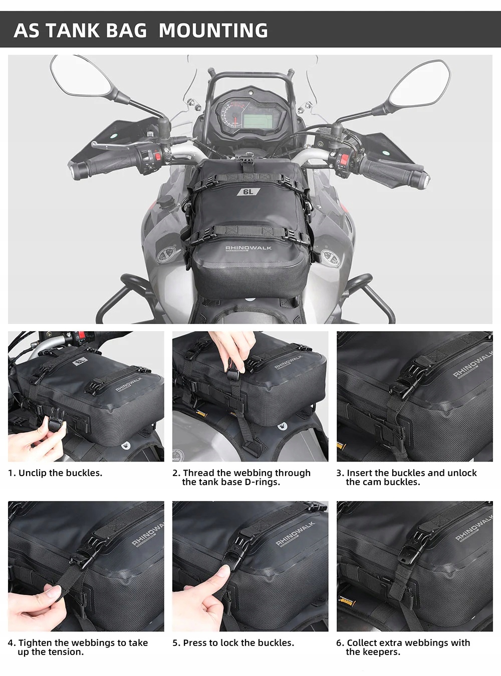 C: Для уличных/нейкедовых/спортивных мотоциклов подключайтесь к системе крепления RHINOWALK MT001A или MT002A, ее также можно настроить. в качестве сумки на бак или боковой сумки.