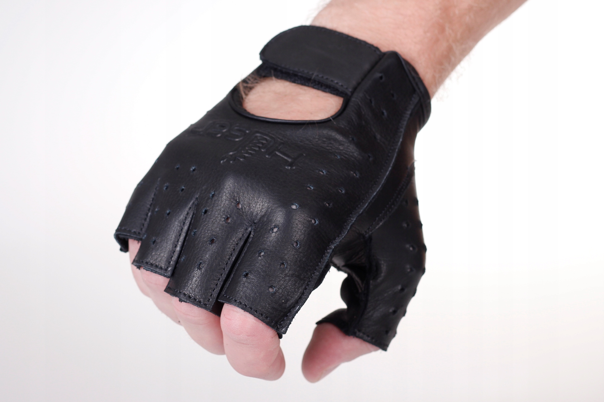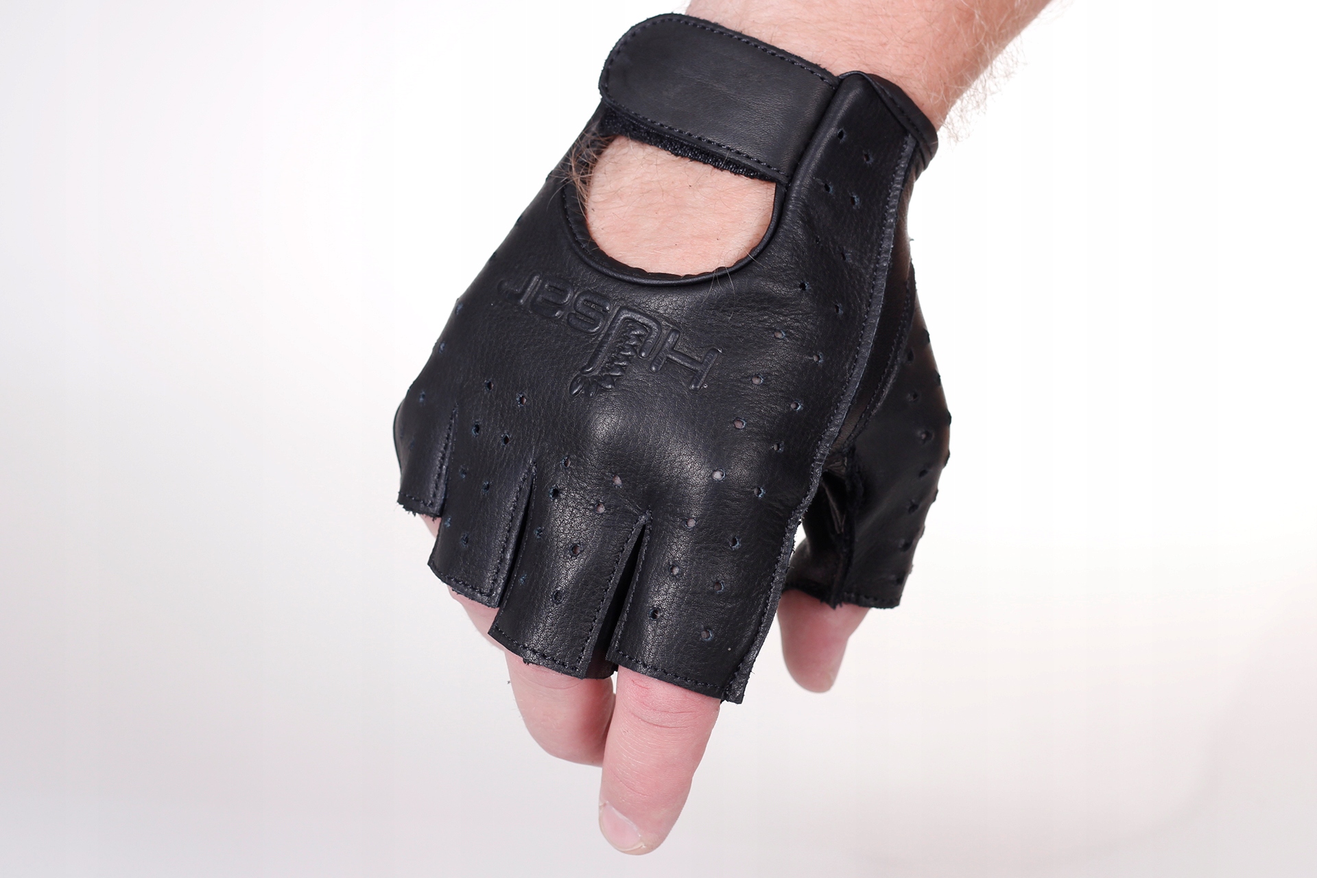 Мотоциклетні шкіряні рукавички без пальців Чоппер HUSAR DELTA чорні