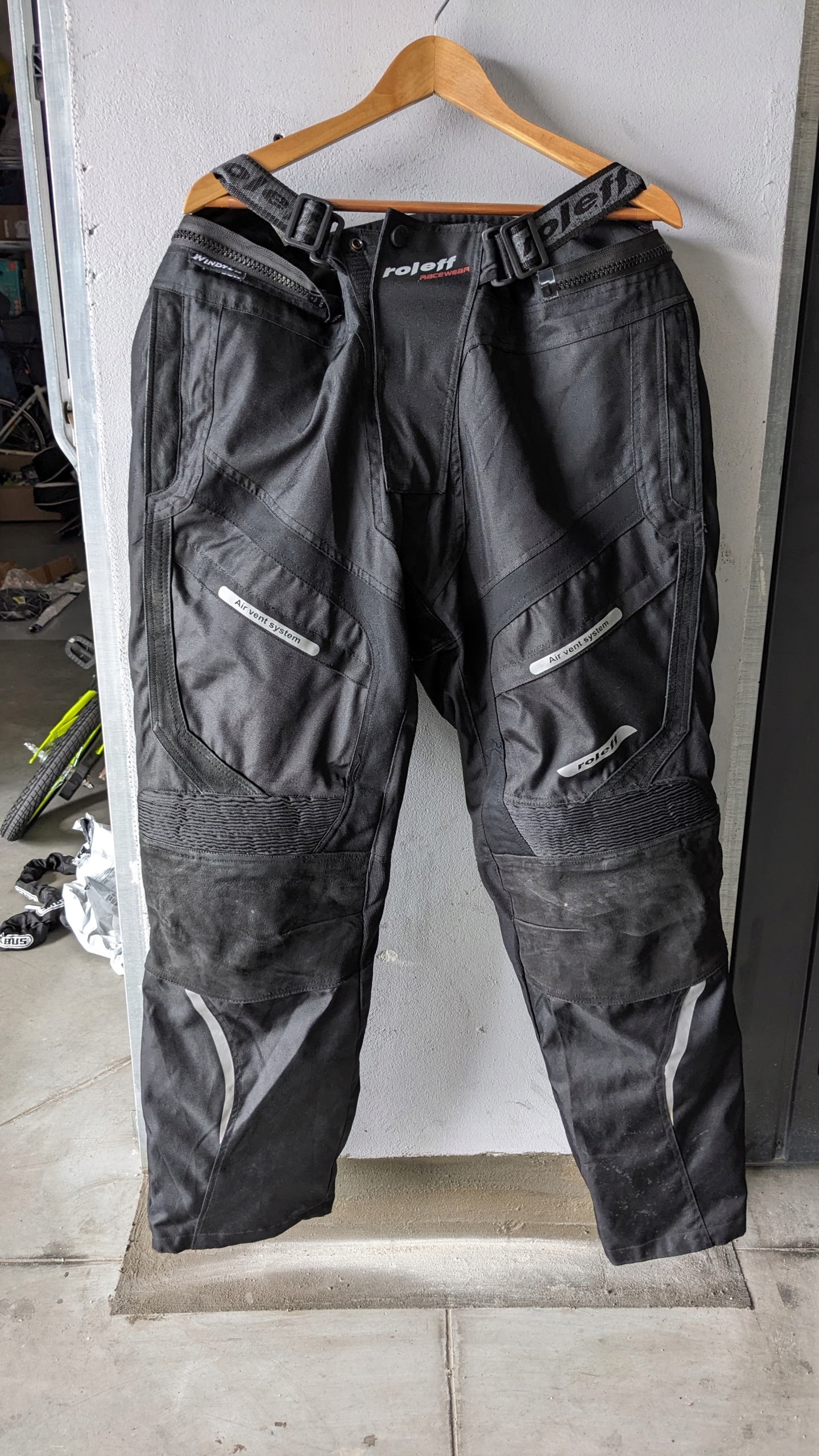 Брюки оснащены короткой и длинной молниями для крепления к мотоциклетной куртке. Таким образом, они подходят для обеих систем соединений Roleff Racewear