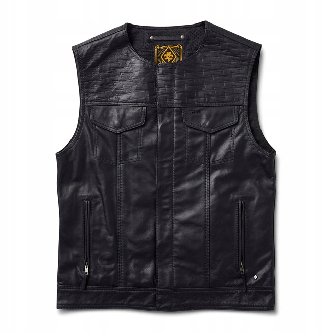 Жилет Lewis, изготовленный из 100 % высококачественной кожи буйвола, обработанной вручную, оснащен прочной передней молнией с планкой и потайными кнопками.