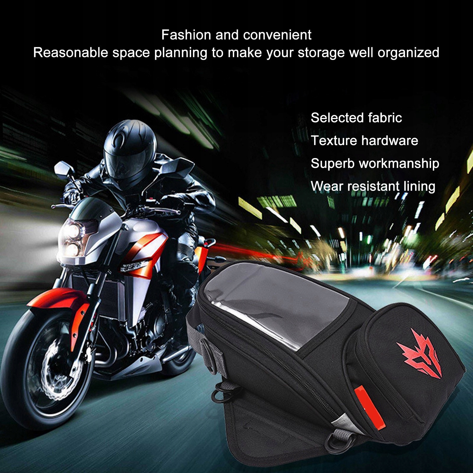 2. Сильная монтаж: мешок с топливным баком прикреплен к магнетизму, благодаря тому, что мешок жестко подходит на топливный бак. Мы также предоставляем полосы так, чтобы сумка была сильно прикреплена к топливному баку мотоцикла.