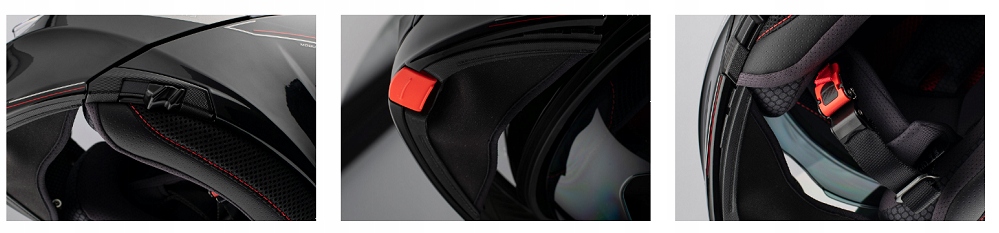 - СКЛАДНАЯ ЗАЩИТА ПОДБОРОДКА - система открывания защиты подбородка (управляется одной рукой) с помощьюОмологация P/J, позволяет ездить как с открытым, так и с закрытым /b>подбородком.