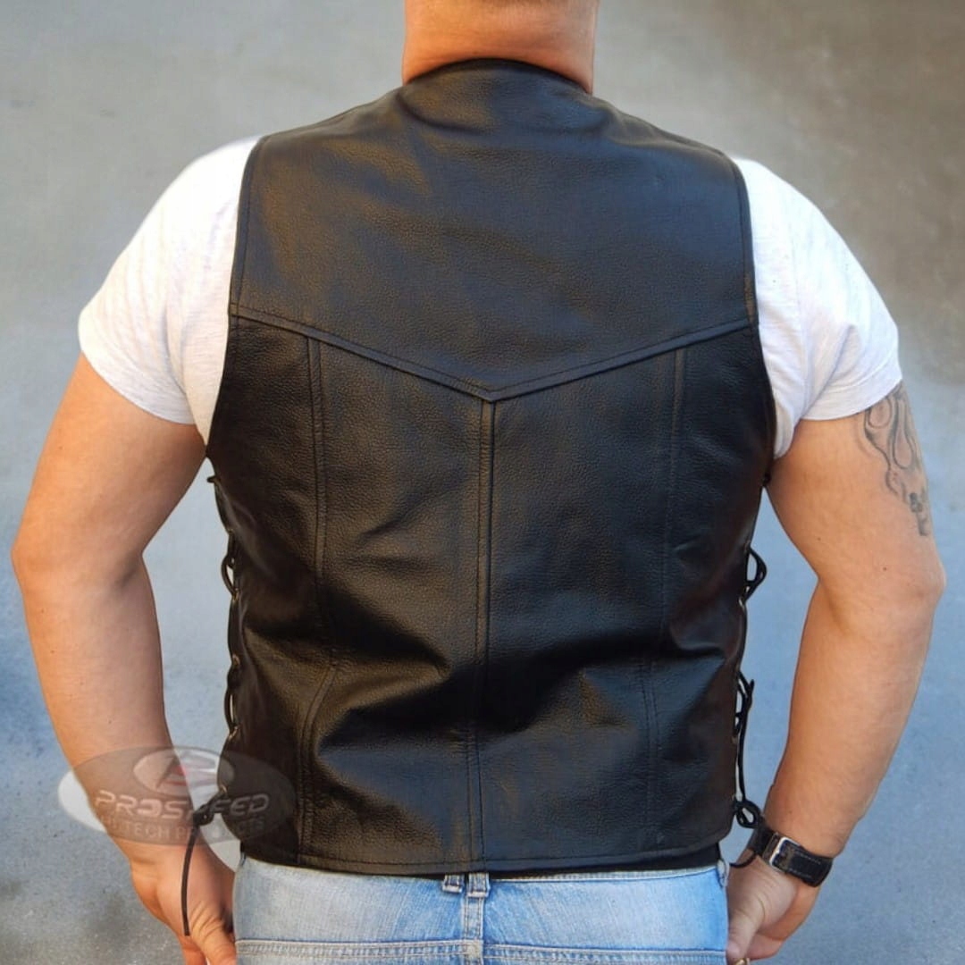 ⚠️Кожаный жилет для мотоциклистов, черный – S