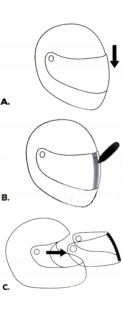 Закройте козырек шлема, прижмите его как можно сильнее (рисунок А) ).