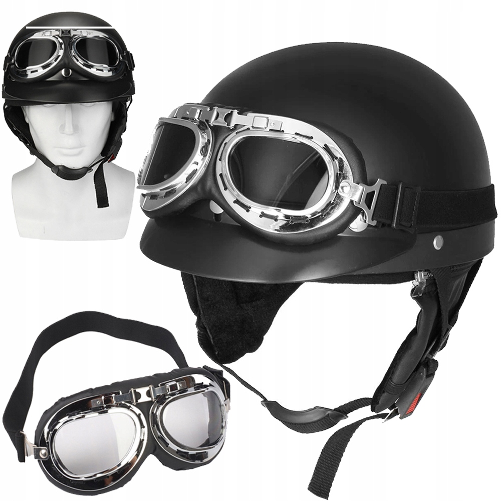 МОТОЦИКЛЬНЫЙ ШЛЕМ РЕТРО ШЛЕМ УНИВЕРСАЛЬНЫЙ ПОЛУШЛЕМ + БЕСПЛАТНЫЕ ОЧКИ