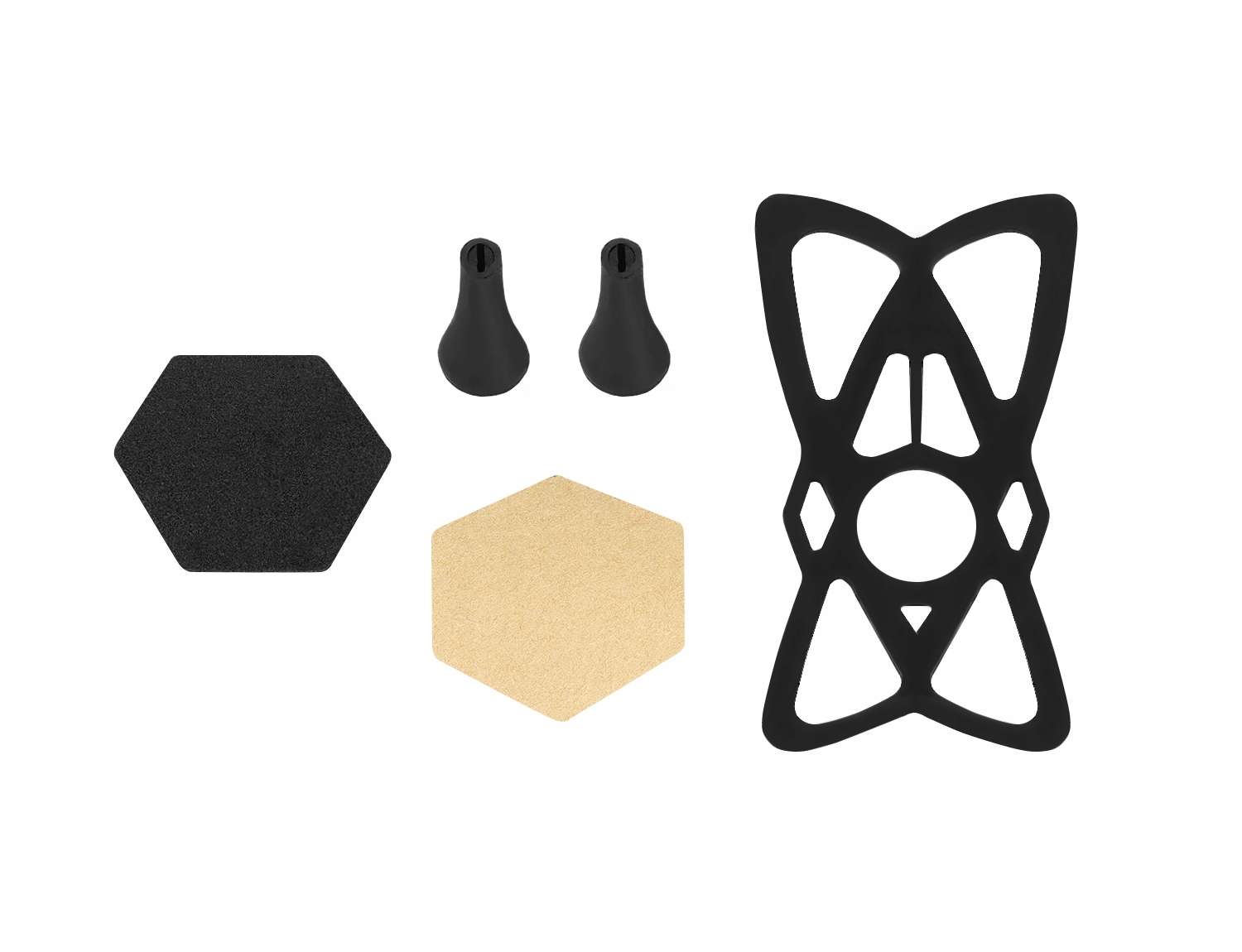 В комплект также входит резиновый чехол, защищающий телефон от выпадения. Крепится, хорошо натянув его по углам телефона или навигатора. Кроме того, в комплект входят 2 запасные защиты ручек. Также на держатель можно наклеить защитную фетровую наклейку (комплект из 2 шт.), которая защитит телефон от царапин.