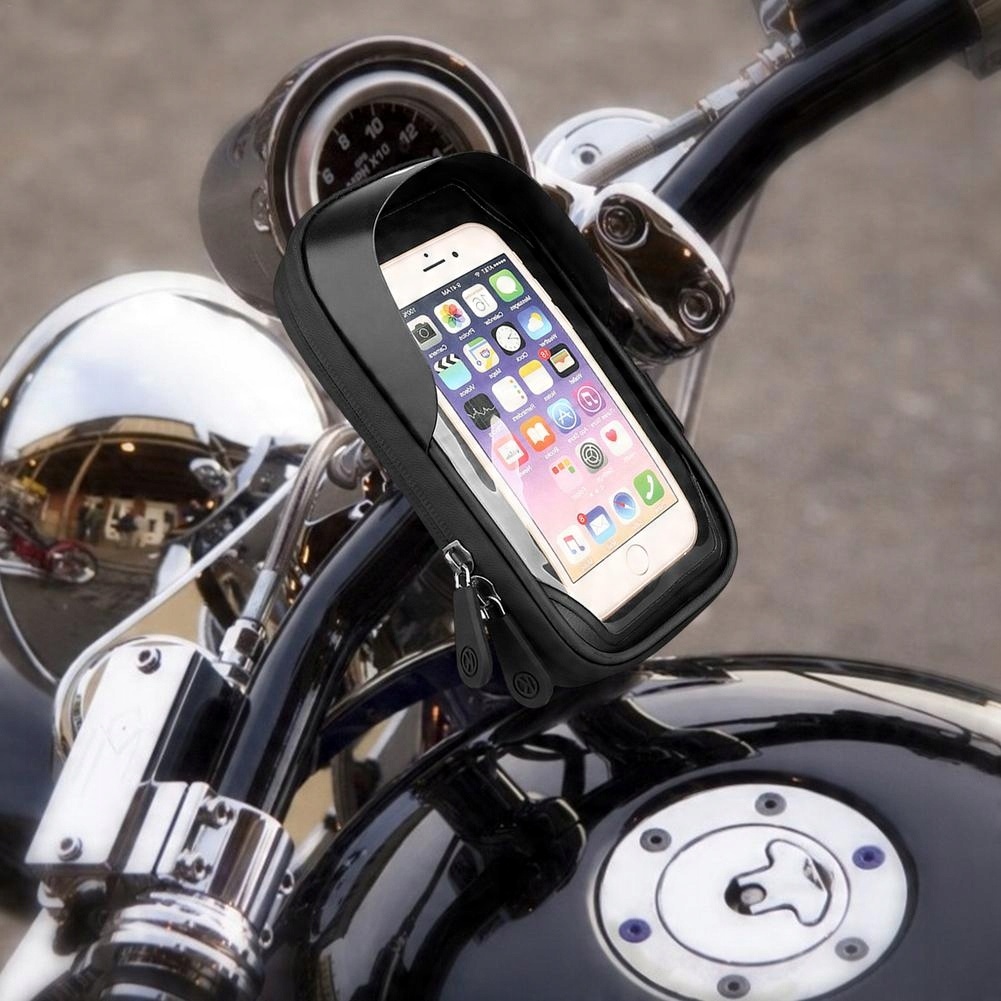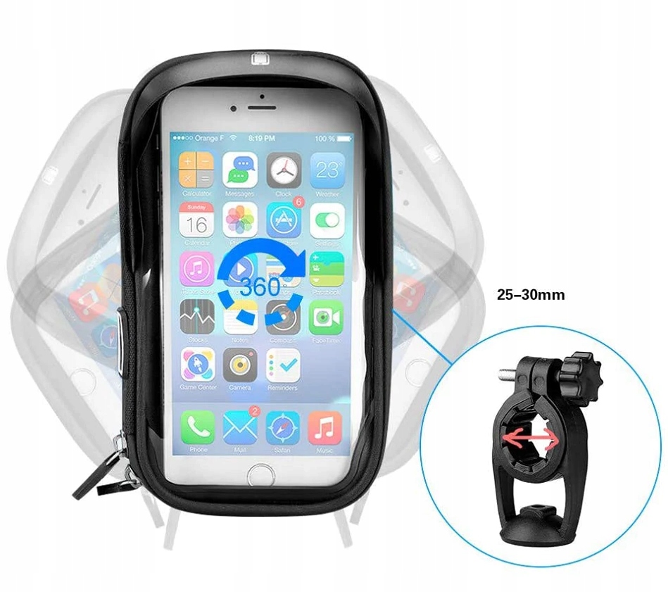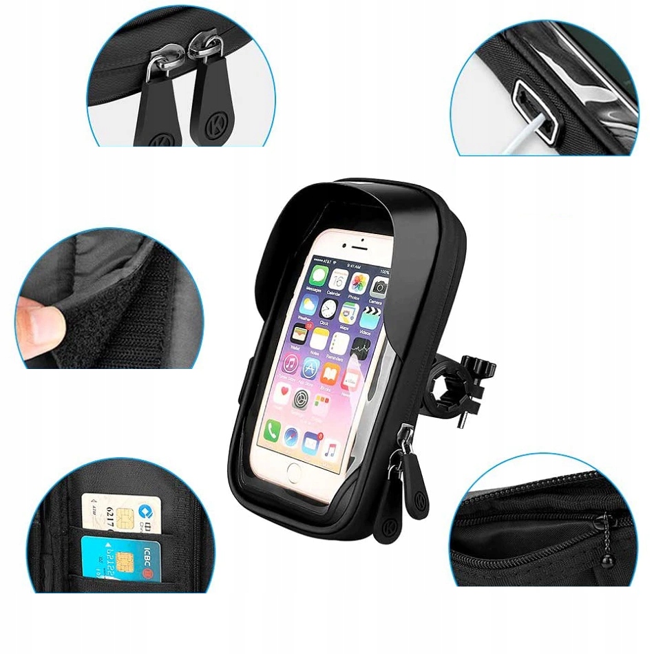 крышка водонепроницаемой, чтобы ее можно было использовать в любых погодных условиях. Защищает от воды, грязи и пыли. Он прикреплен двумя молниями. Его самым большим преимуществом является солнечное козырьк для лучшей видимости экрана во время интенсивного солнечного света. Другим преимуществом являются наушники или кабель питания на стороне. На обложке есть два кармана для кредитных карт, документы, а также замок, в котором вы можете спрятаться, например, Тонкий силовой банк. Установка выполняется с использованием регулируемой ручки рулевого управления в наборе . Можно наклонить корпус и повернуть 360 градусов. Прозрачный тактильный пластик позволяет использовать телефон без удаления его с крышки. Телефон в обложке прикреплен липучкой.