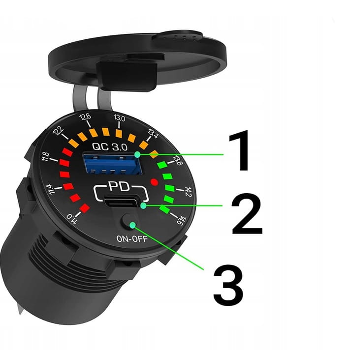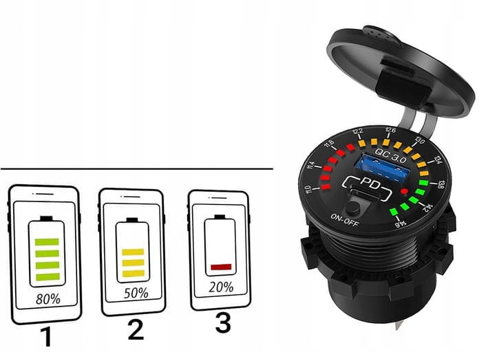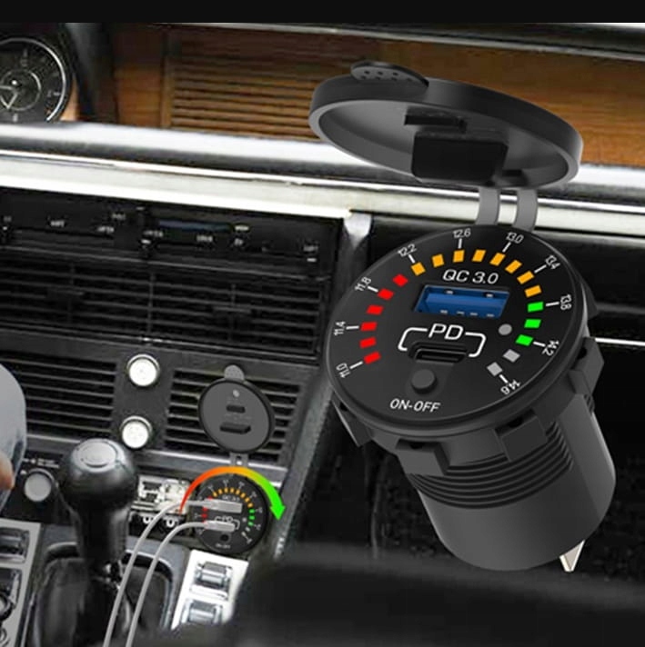 Водонепроницаемое быстрое зарядное устройство — настоящий союзник мотоциклистов, оно предназначено для самых разных транспортных средств: от мотоциклов до скутеров и квадроциклов. Отличительной чертой этого продукта является его универсальность и расширенные функции. Он оснащен портом USB QC3.0 (18 Вт) и USB-C PD 3.0 (30 Вт), что позволяет быстро и эффективно заряжать различные устройства.
