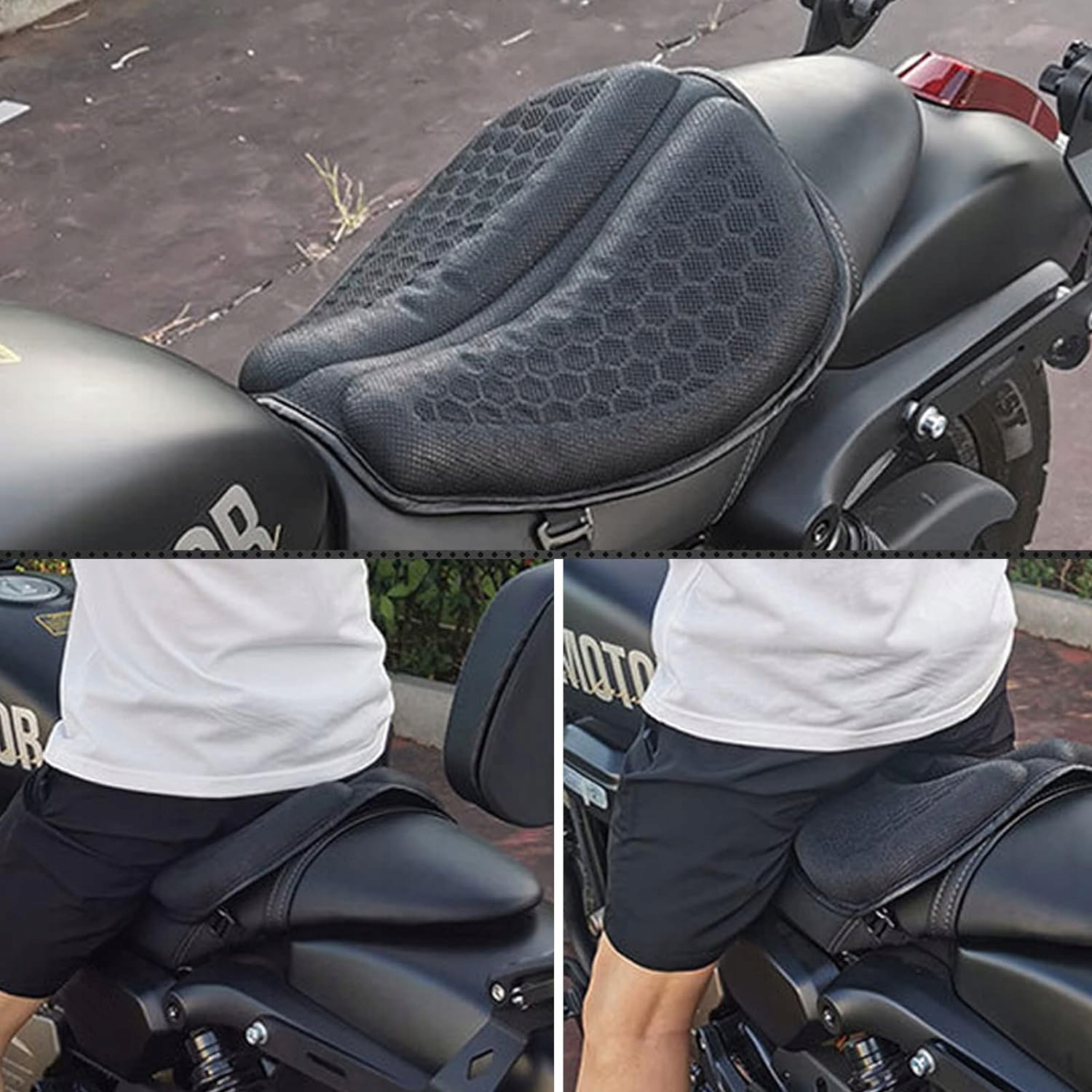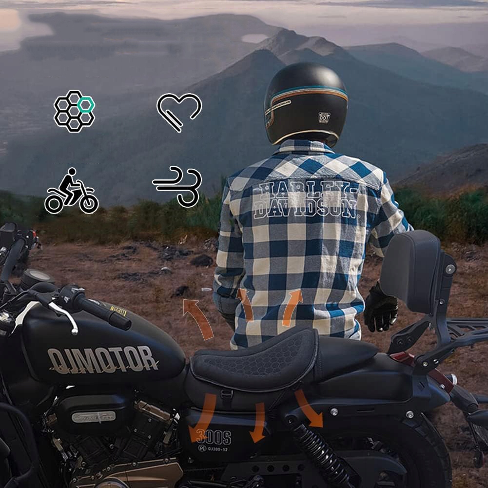 Подушка сиденья мотоцикла использует циркуляцию воздуха через радиатор Структура слота, которая может уменьшить тепло и влагу, чтобы приклеить приклад. Трехмерная сотовая структура увеличивает воздухопроницаемость и обеспечивает циркуляцию большого количества воздуха, помогая вам охлаждаться и рассеивать тепло, сохраняя вас сухими на протяжении всей поездки, не оставляя пятен на попе, обеспечивая лучшее и более комфортное катание.