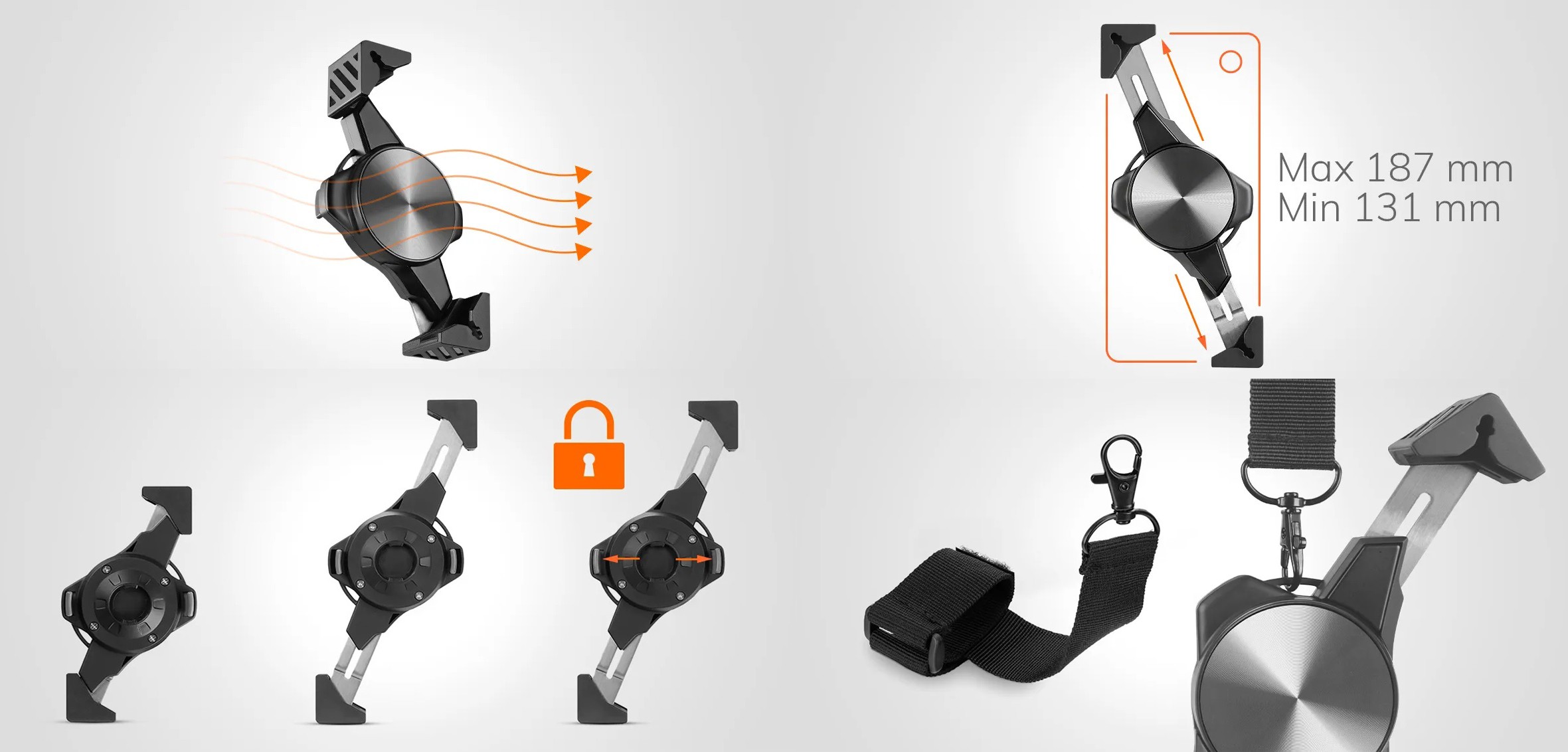 Совместимость со смартфонами диагональю от 131 мм до 186 мм (5,2–7 дюймов) и с корпусами различной толщины,