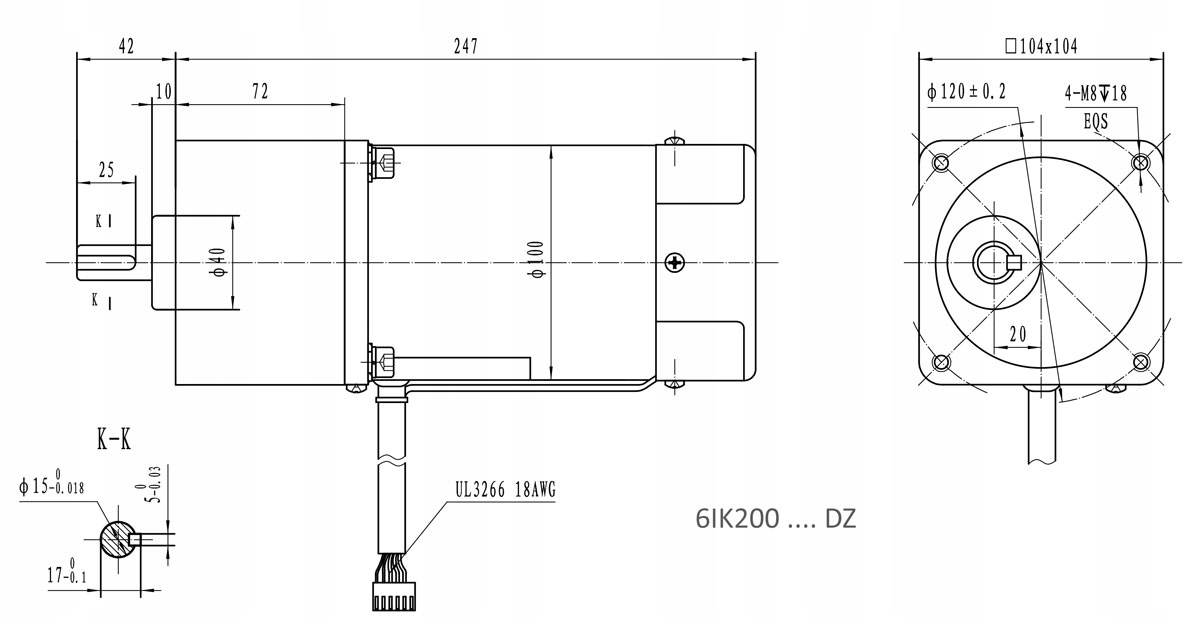 Двигатель-редуктор однофазный 6ИК200Р-40 с регулятором УС33-200Вт