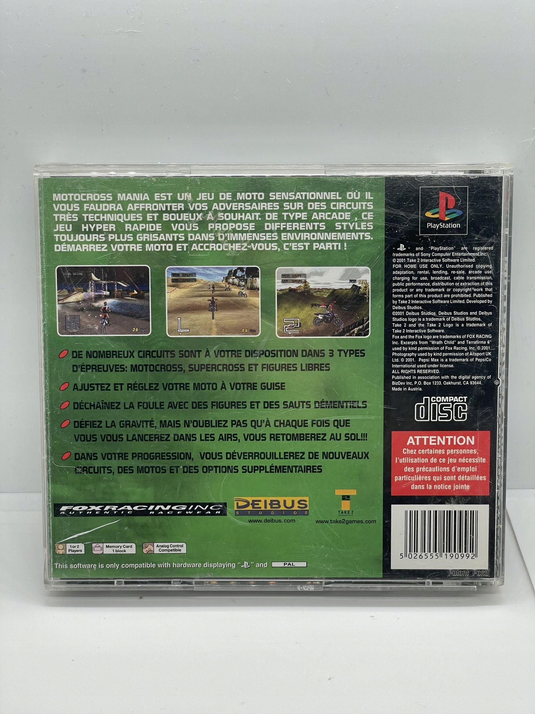 Оплачивая «Motocross Mania PS1 Гра для PSX», вы можете быть уверены, что данный товар из каталога «Sony PlayStation (PSX)» будет доставлен из Польши и проверен на целостность. В цене товара, указанной на сайте, учтена доставка из Польши. Внимание!!! Товары для Евросоюза, согласно законодательству стран Евросоюза, могут отличаться упаковкой или наполнением.