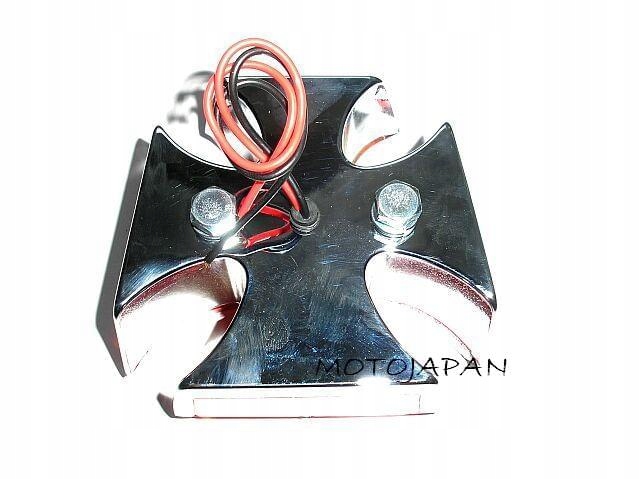 Предмет аукциона — новый задний фонарь для мотоцикла в форме креста.