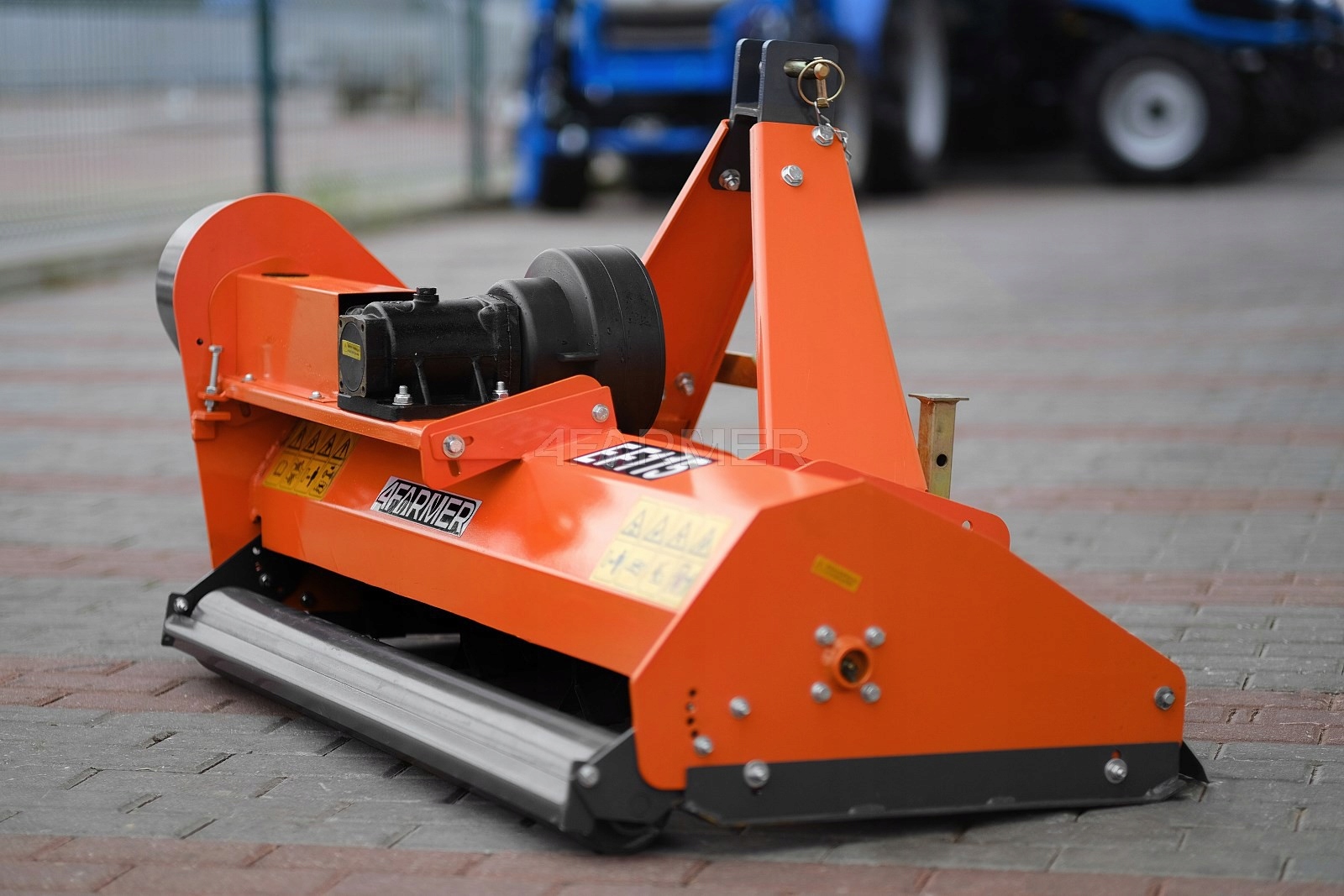 цеповая косилка (мульчер) EF 125 4FARMER имеет ширину среза 125 см, при этом в предложении имеется семь доступных вариантов ширины. Помимо цельного рабочего вала, оснащенного горизонтально расположенными измельчающими битами, косилка имеет еще задний (ведомый) вал. Он позволяет регулировать высоту среза и удерживать косилку на выбранной высоте. Привод от ВОМ трактора составляет 540 об/мин.