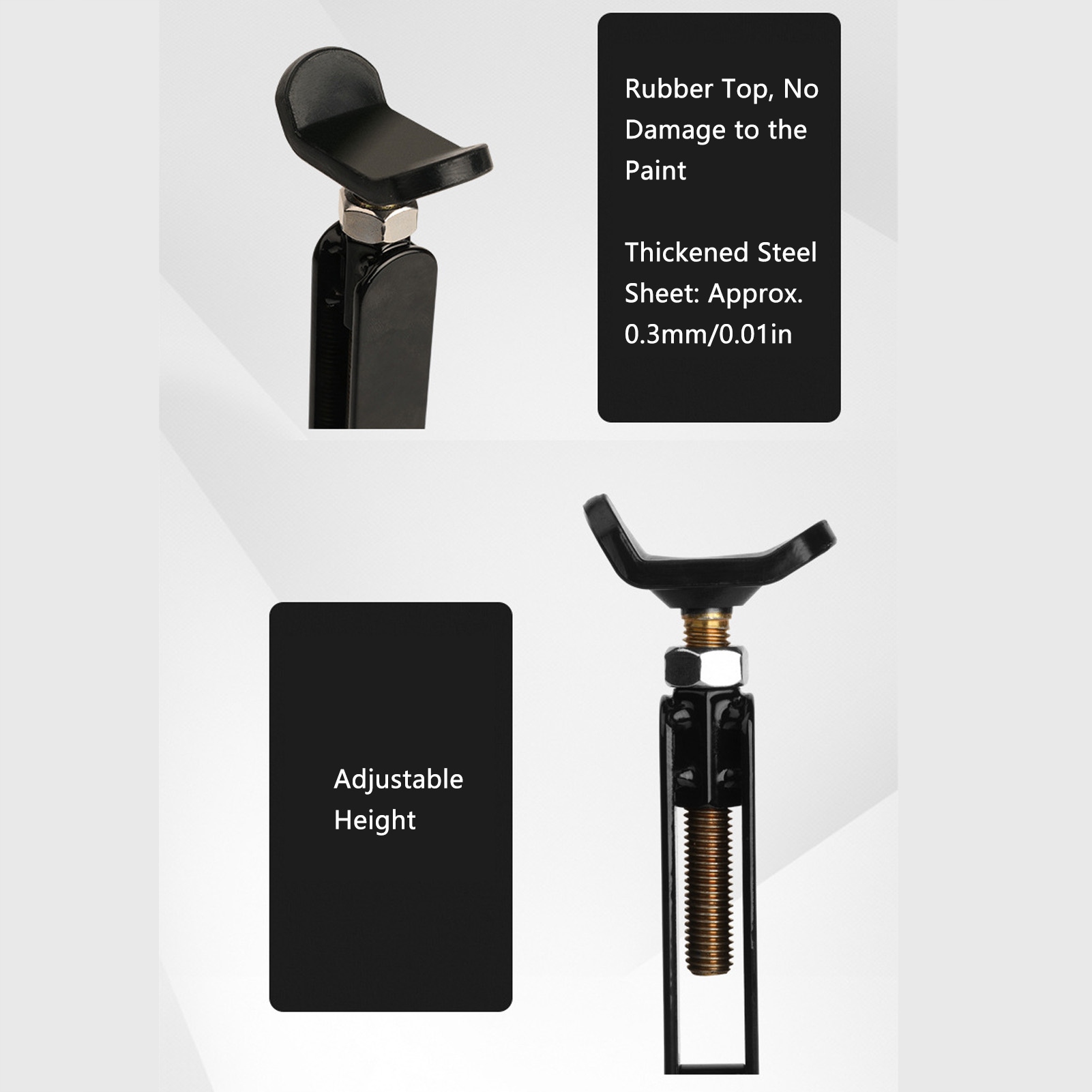 4. Резиновая верхняя часть: подставка для подъема колес имеет резиновую верхнюю часть из стального листа толщиной 0,3 мм, устойчивую к скольжению и износу, не повреждающую внешний вид мотоцикла.
