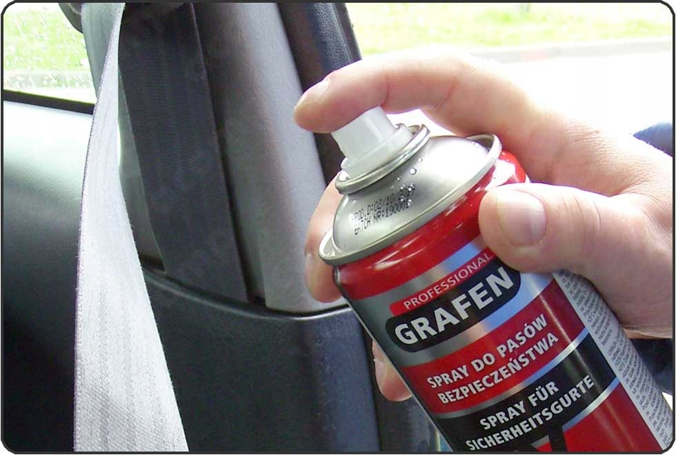 GRAFEN PRO для ремней безопасности 400 мл – сервисный спрей для регенерации ремней безопасности. Версия для всех ремней, с механическими, электронными и пиротехническими натяжителями.