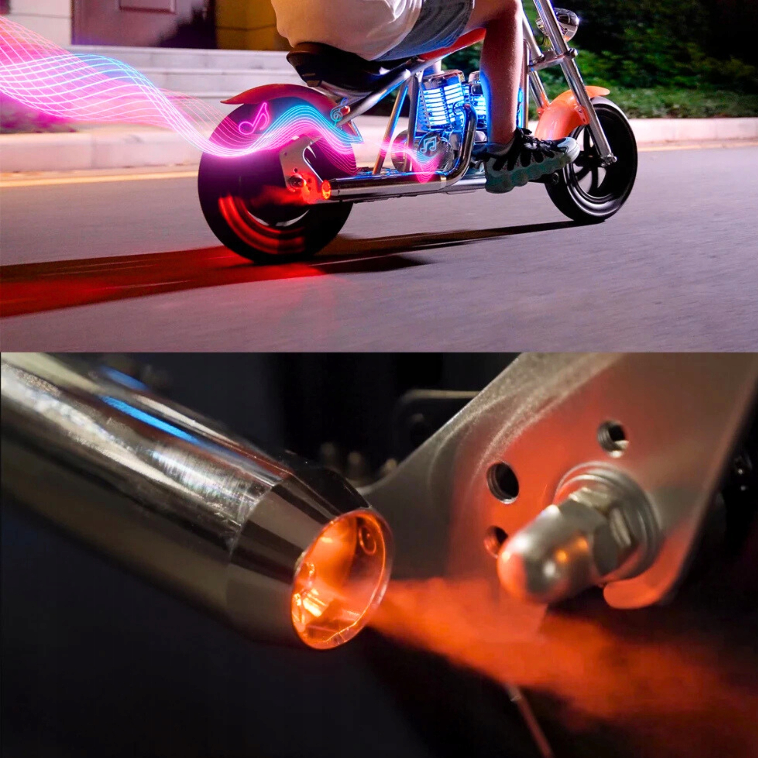 Реальные звуки двигателя встречаются с ослепительными огнями, меняющими цветы. Погрузите своего ребенка в совершенно новый мир приключений на мотоцикле, стимулируя его воображение и растущее удовольствие.