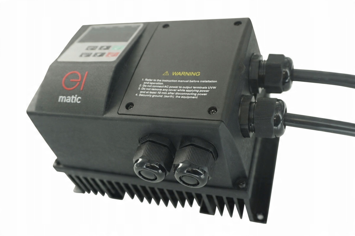 Инвертор, герметичный корпус, регулировка скорости с помощью кнопок на панели управления.
