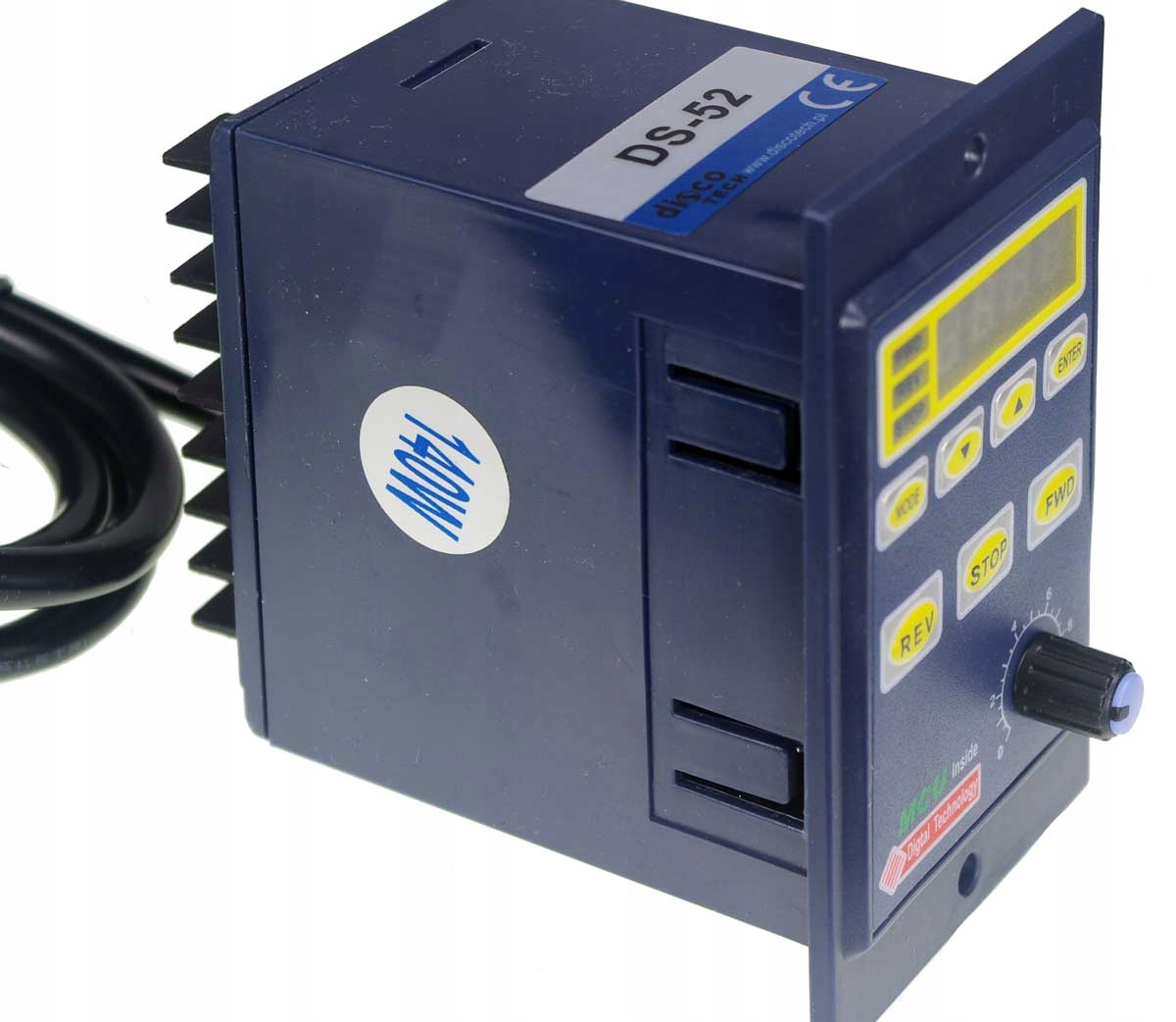 - регулятор с ручкой регулировки скорости, переключением направления вращения и выбором упора. и универсальный дисплей, адаптированный к двигателю.