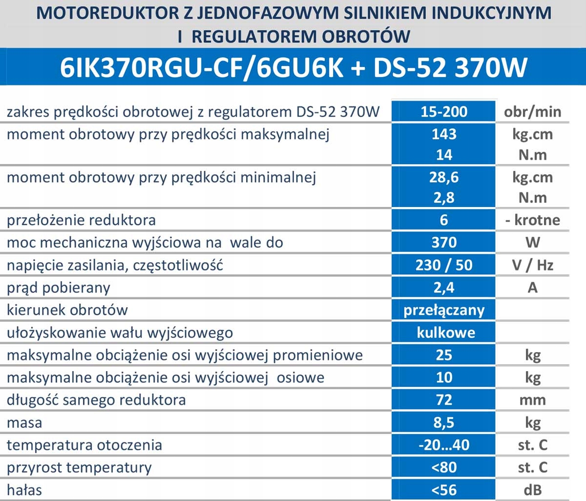 Мотор-редуктор однофазний з регулятором 15-200 об/хв 230В 370Вт