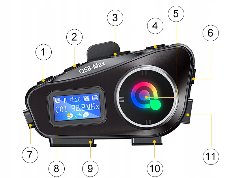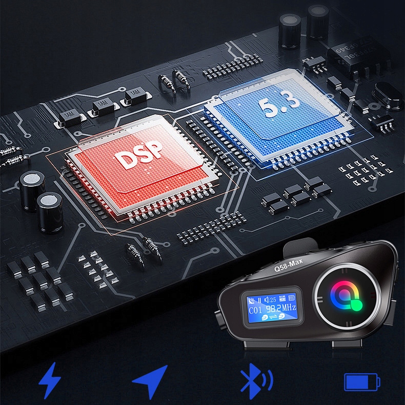 ✅ Установлена в двухъядерном Bluetooth 5.3 Motorcycle Intercom Q58-MAX Motorcle Intercom обеспечивает непревзойденную связь. Благодаря диапазону до 500 метров наше устройство всегда обеспечивает тесный контакт с другими мотоциклистами.