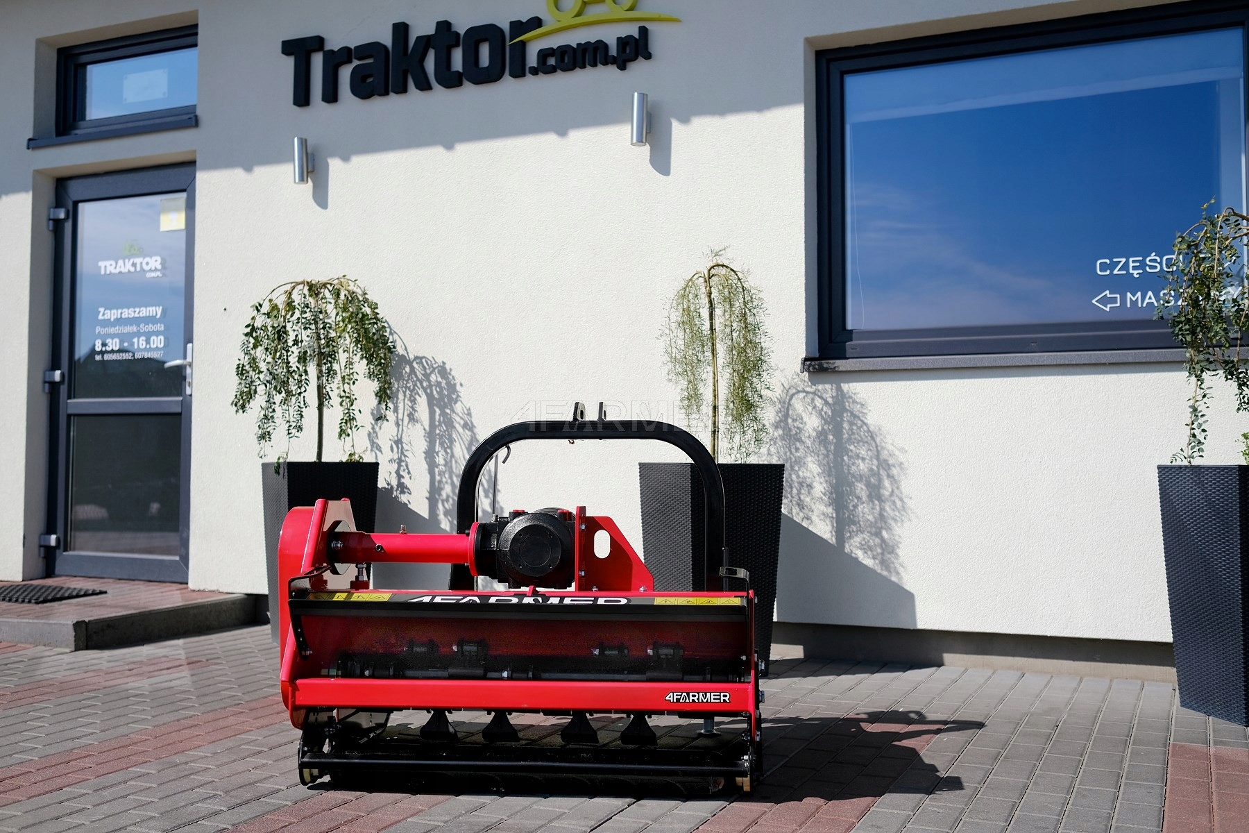 Цеп косилка (мульчер) EFGC 105D 4FARMER имеет ширину среза 105 см. Помимо рабочего вала, оснащенного спирально расположенными измельчающими битами, косилка имеет еще задний (ведомый) вал. Он позволяет регулировать высоту среза и удерживать косилку на выбранной высоте. Привод от ВОМ трактора — 540 об/мин.