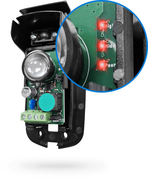 светодиоды сообщают о правильной настройке фотоэлемента, которая облегчает установку и повышает эффективность работы.