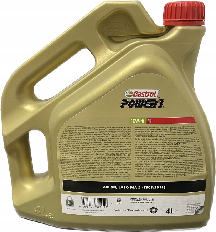 Castrol Power 1 4T SAE 10W-40 — полусинтетическое моторное масло премиум-класса. масло. Предназначен для новейших конструкций двигателей 4T. Масло, поддерживаемое современной формулой Power Release, снижает рабочее сопротивление двигателя, благодаря чему мотоцикл использует всю свою мощность. Это позволяет быстрее достигать высоких оборотов двигателя, что приводит к гораздо лучшему ускорению и максимальной скорости. Мотоциклетное масло Castrol 10W-40 прекрасно работает в конструкциях, в которых используется одна масляная ванна для двигателя, коробки передач и сцепления. Оно качественно смазывает и защищает все элементы.