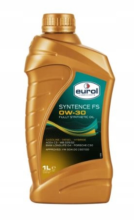 Eurol Syntence FS 0W-30 — высококачественное синтетическое моторное масло с высокими эксплуатационными характеристиками для использования в бензиновых двигателях, также оснащенных сжиженным нефтяным газом, и дизельных двигателях легковых автомобилей и легких коммерческих автомобилей, также оснащенных сажевые фильтры. Eurol Syntence 0W-30-FS разработано специально для легковых автомобилей и легких коммерческих автомобилей группы VAG (Volkswagen, Audi, Seat и Skoda). Подходит для увеличенных интервалов замены масла: до 30 000 км для бензиновых двигателей и 50 000 км для дизельных двигателей. Eurol Syntence FS 0W-30 превосходит требования стандарта VW по топливной эффективности на 10% (тесты расхода топлива VW PV 1451 в рамках стандартных испытаний VW 504.00/507.00).