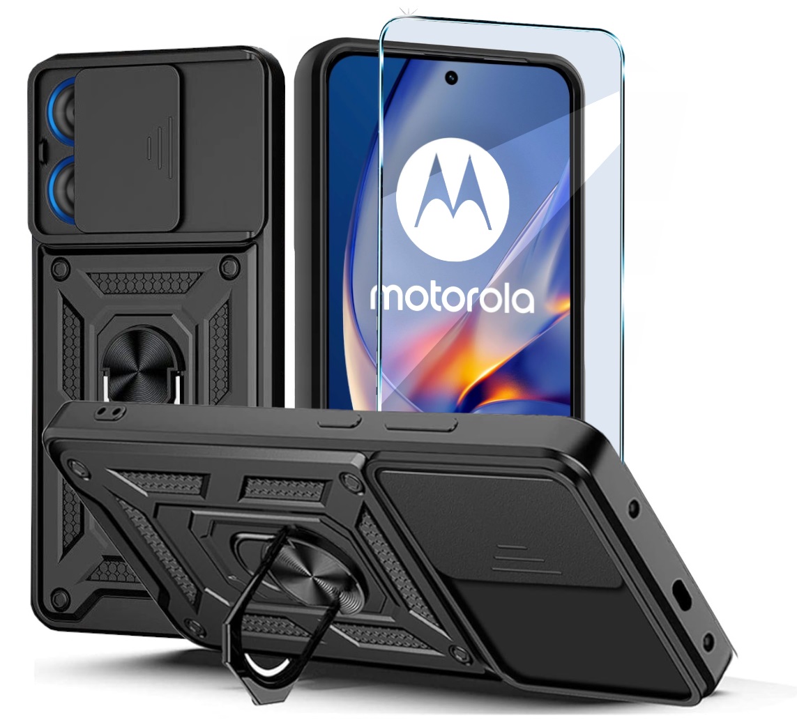 Motorola Edge 50 Neo 360 ° Slide Camera Case Case +закаленное стекло