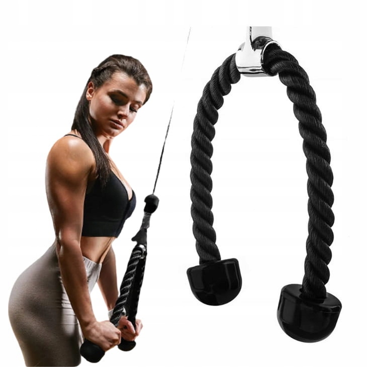 Веревка ручки изготовлена из плотно сплетенных прочных нейлоновых волокон; ограничители на концах изготовлены из резины, что обеспечивает прочную и безопасную тренировку, а вращающаяся ручка изготовлена из металла, а это означает, что при использовании более крупных грузов нет риска повреждения устройства и нарушения безопасности; наконечник также защищает скакалку от истирания.