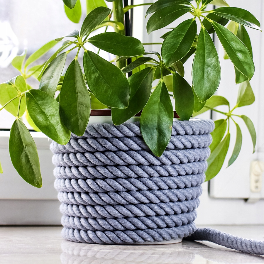 Веревка хлопчатобумажная, 3-жильная, скрученная, из натуральной хлопчатобумажной пряжи, окрашенная в интенсивный серый цвет
