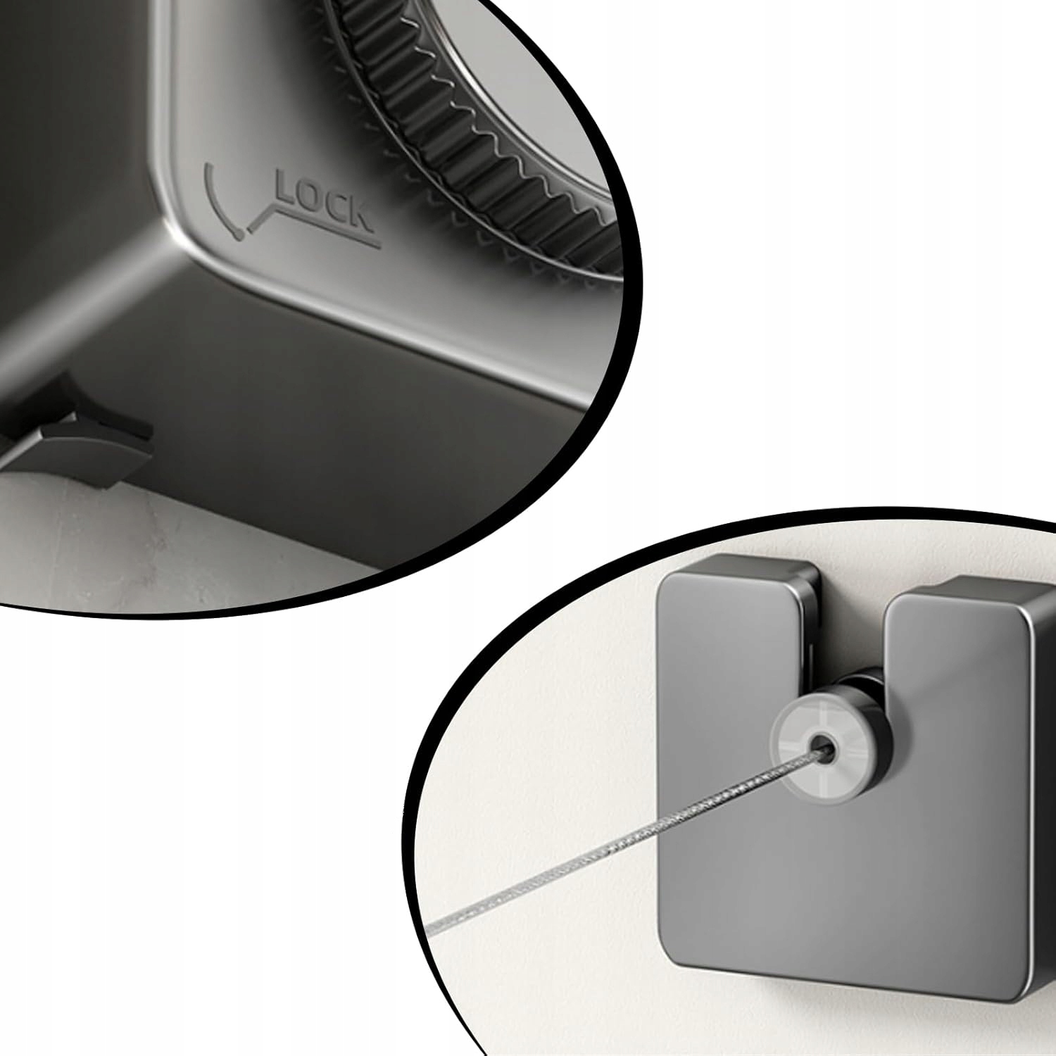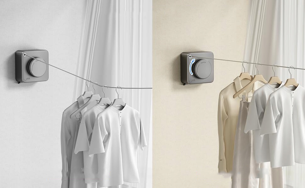 - Веревка для белья изготовлена из высококачественного корпуса ABS, алюминиевого монтажного основания и проволоки из нержавеющей стали.