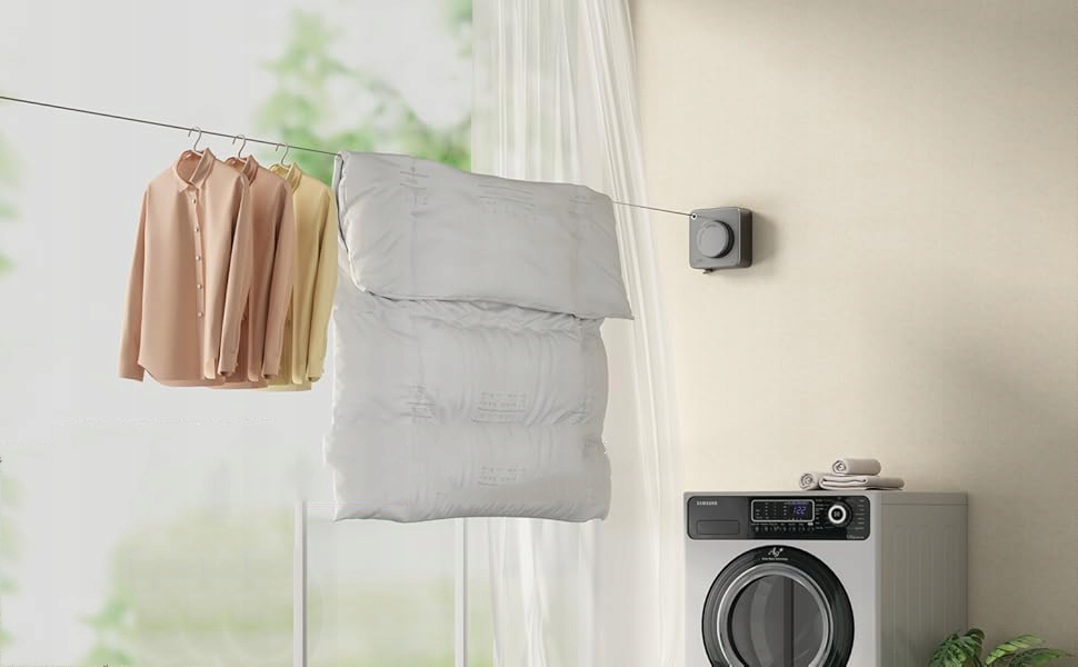 - Нашу веревку для белья можно убрать, когда она не нужна, она очень маленькая и не занимает места, вы даже забудете что у вас есть веревка для белья.