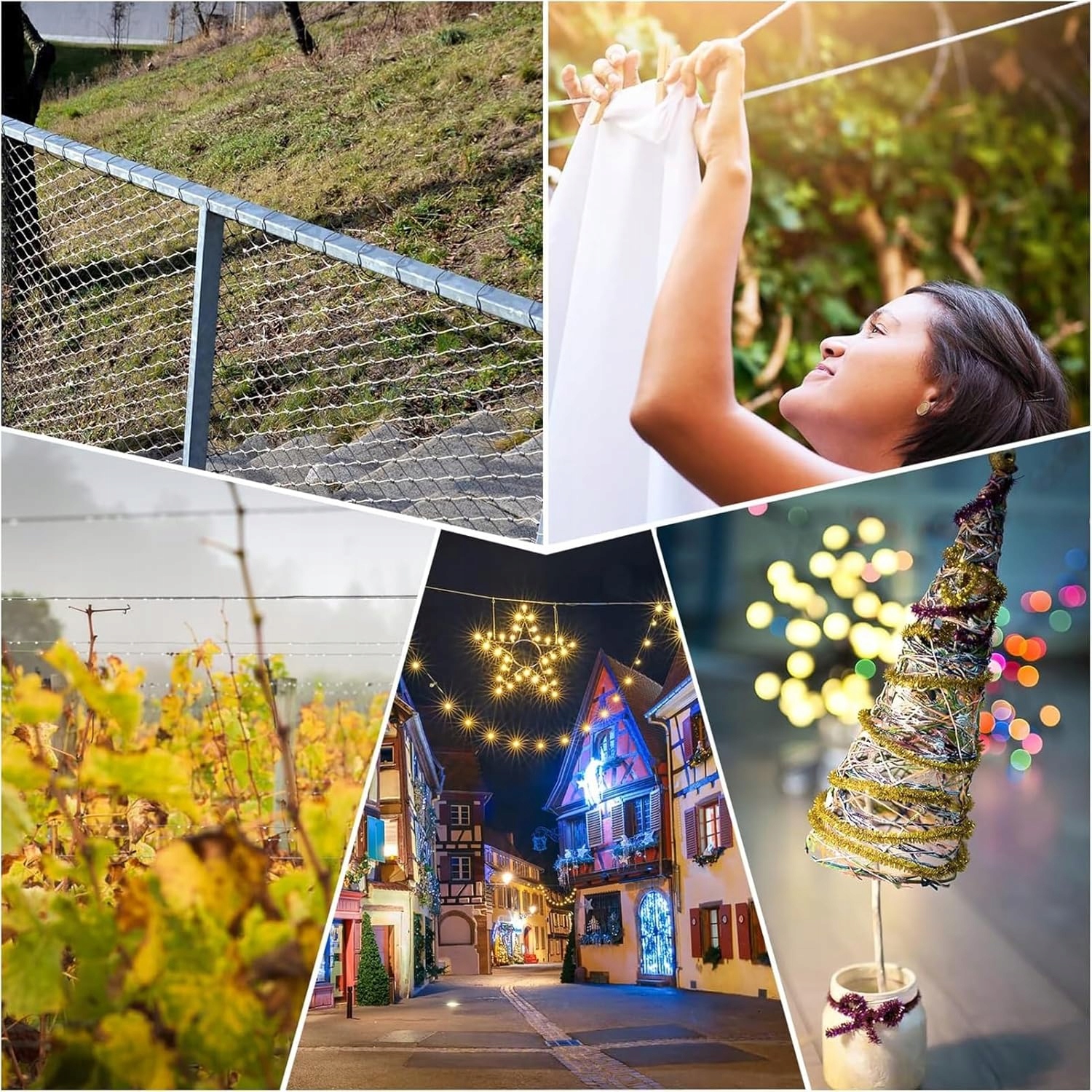 🔹 может использоваться для различных тяжелых задач и обеспечивает большую гибкость использования, включая световые шнуры, перголы, проволочные фермы, линии для нижнего белья, линии забора и другие.