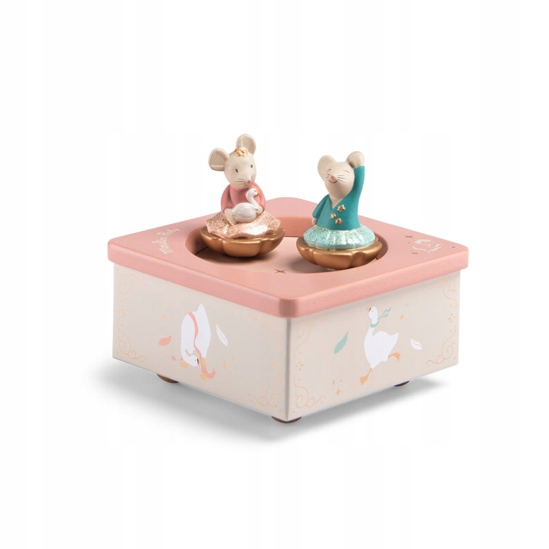 Мыши из коллекции Small Dance School готовятся к выступлению! Они готовы показать свою хореографическую систему каждому интересному ребенку. Деревянная музыкальная коробка от Moulin Rota дает нежную мелодию после обмотки металлической ручки. В то же время фигуры мышей, сделанные из смолы, начинают свой эффектный танец, вращаясь вокруг своей оси на вершине музыкальной коробки. Игрушка может служить помощи в спящих детях или доставлять радость детям старшего возраста, которые могут замолчать ее самостоятельно и наблюдать за движением мышей. Идеальное оборудование для детской комнаты. Поверхность музыкальной коробки может быть очищена деликатной и влажной тканью.