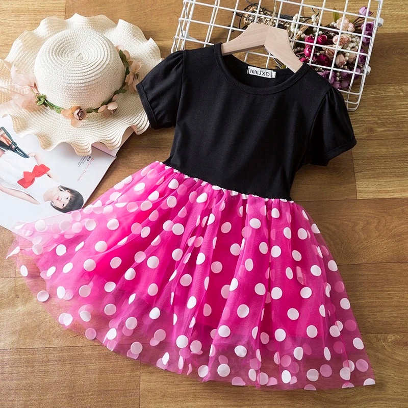 - Низ платья 2-слойная тюлевая пачка в горошек,