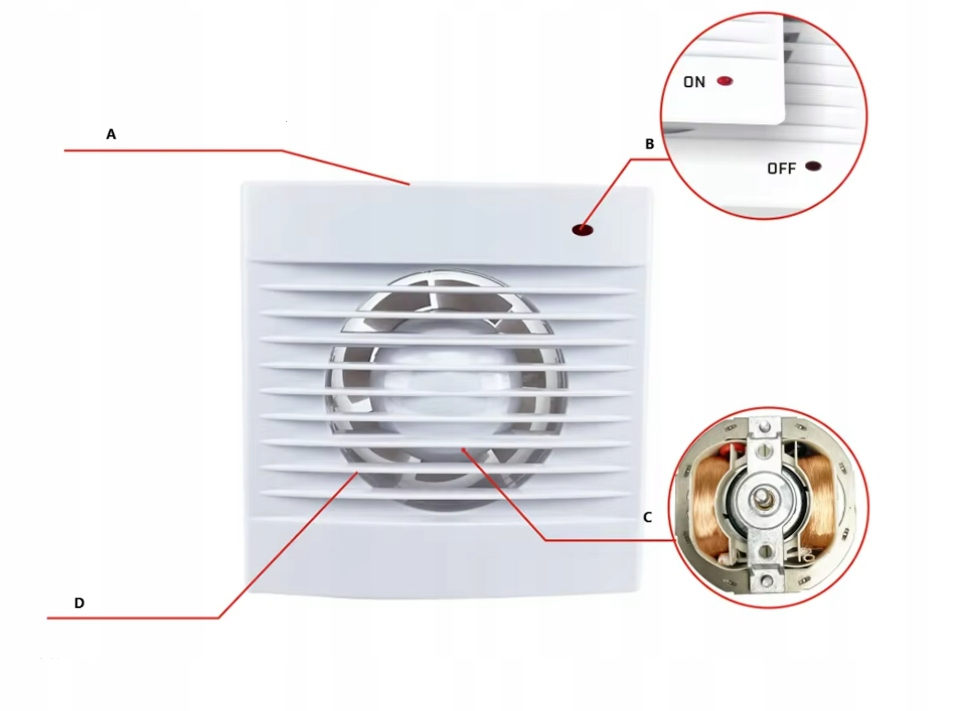 Высококачественное вентиляторы ванной с низким шумом и высокой эффективностью. Адаптировано для сборки к трубам на 100 мм.