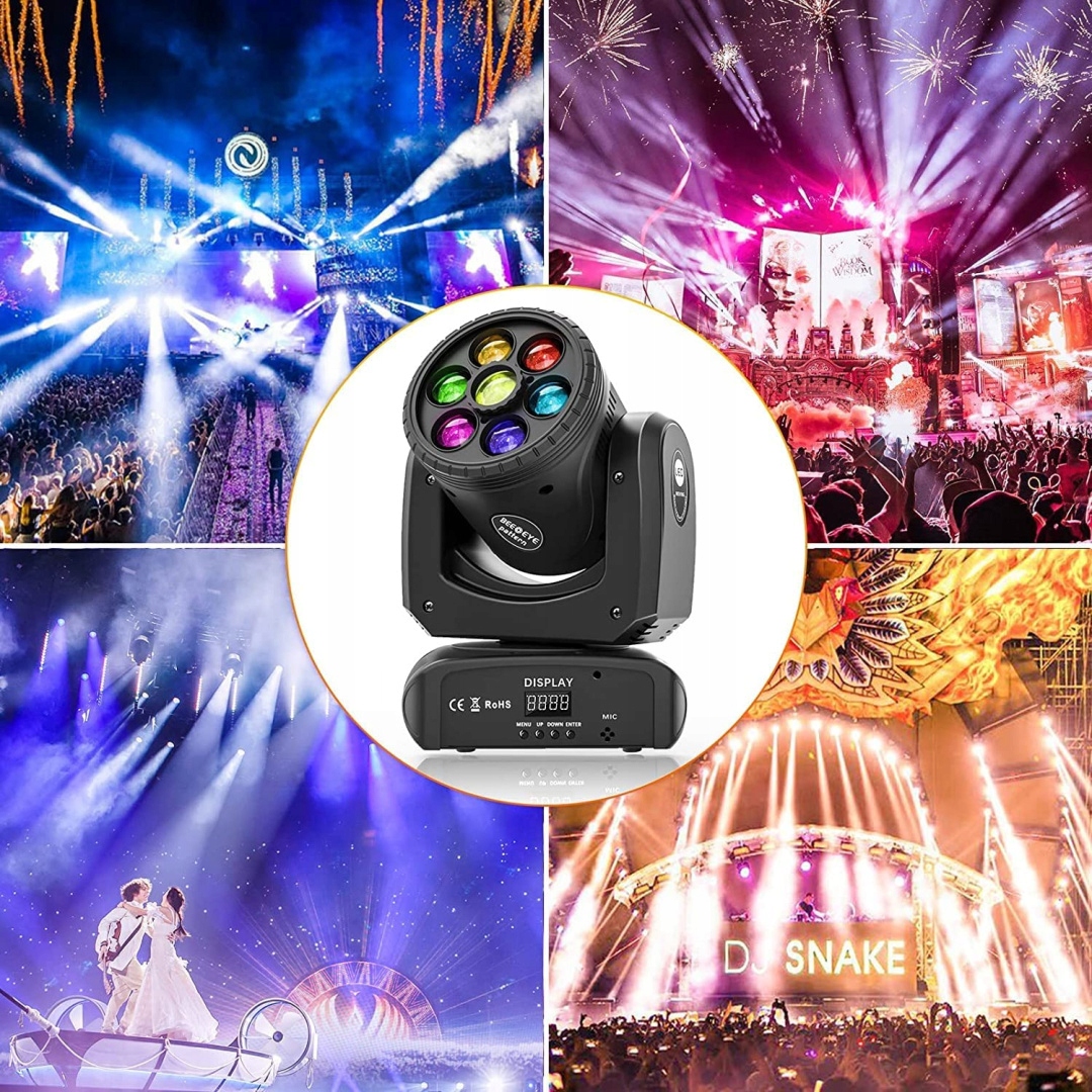 Подвижная головка 2 в 1: Эта светодиодная движущаяся головка оснащена светодиодным лучом 7 GOBO мощностью 30 Вт + 6 светодиодами RGBW мощностью 10 Вт, сверхяркостью и высококачественным световым потоком, плавным смешиванием и яркими цветами, позволяет создавать любой желаемый цвет.